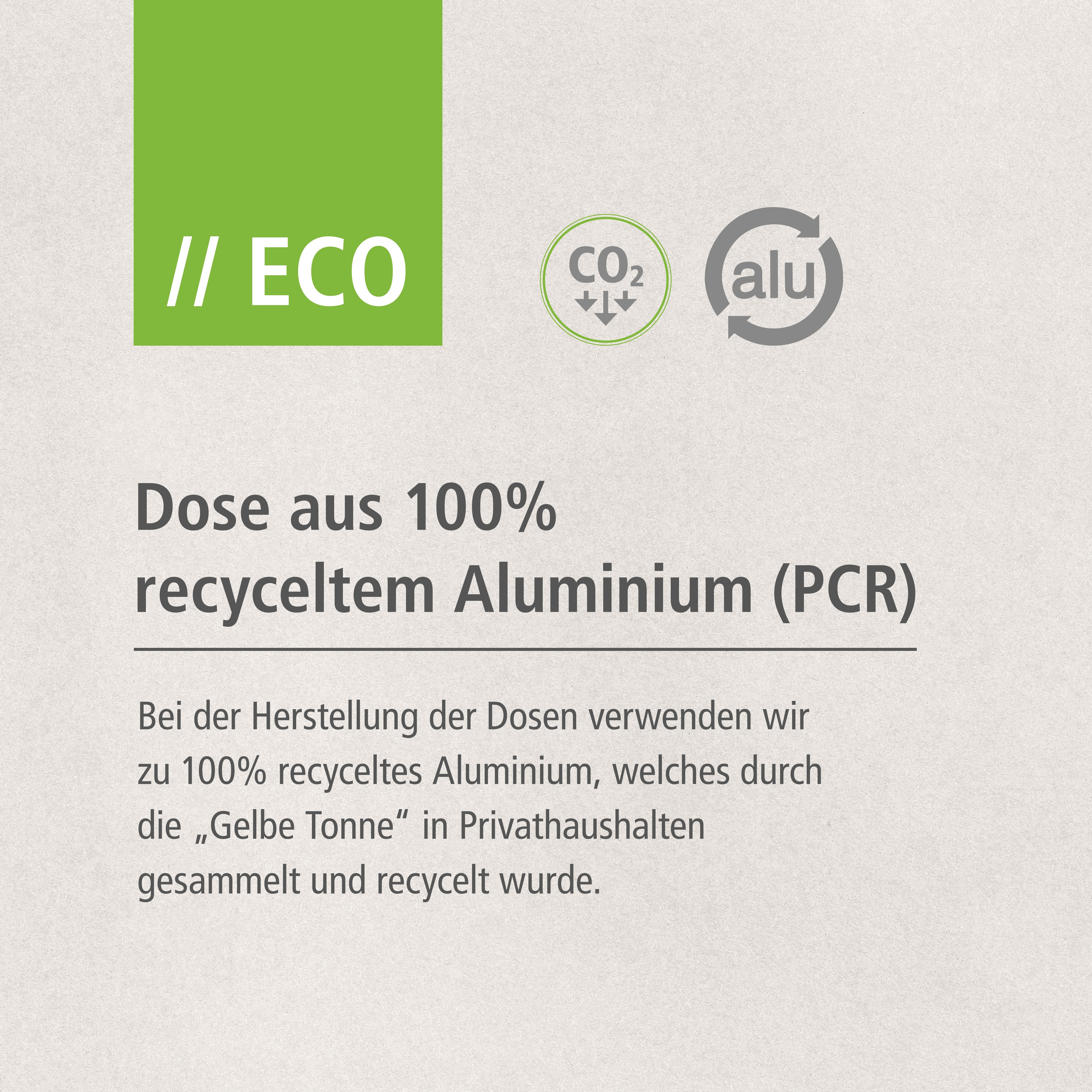 20 ml Aluminium Dose aus 100% recyceltem Aluminium, gebürstet, mit transparentem Sprühkopf und transparenter Schutzkappe. Bei der Herstellung der Sprays verwenden wir für die Dosen und Kappen ausschließlich recyceltes Aluminium und PP. Beide Materialien wurden durch die "Gelbe Tonne" in Privathaushalten gesammelt und recycelt.