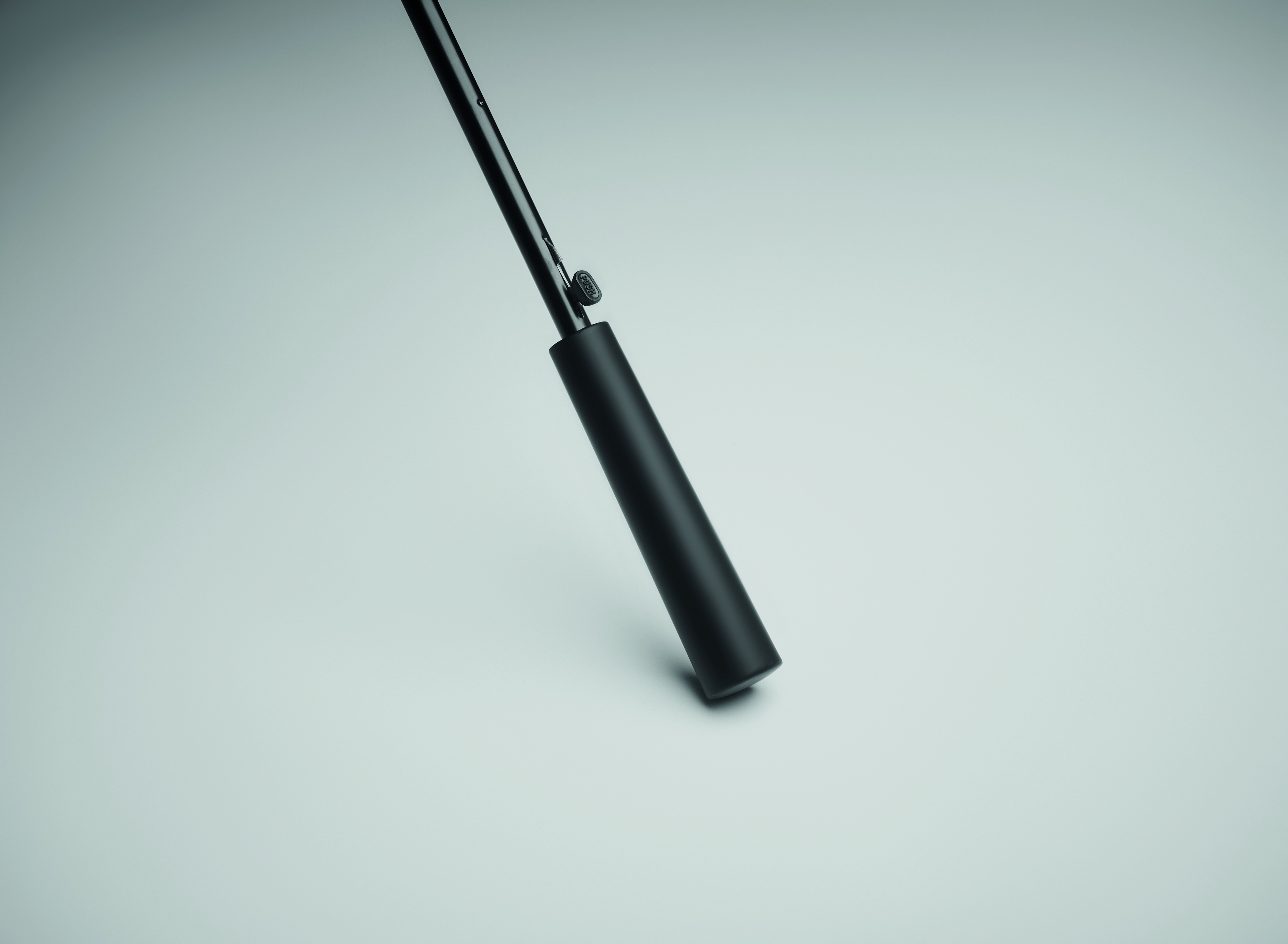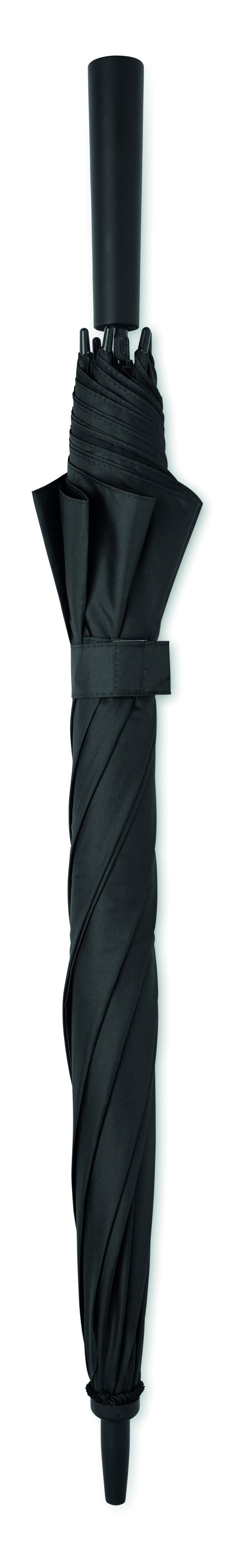 23'''' Regenschirm aus 190T-Pongee. Windbeständig. Stangen aus Fiberglas, schwarz beschichteter Stock und Spitzen aus Kunststoff. Gerader, schwarz gummierter Griff aus ABS. Automatische Öffnung, manuelle Schließung.