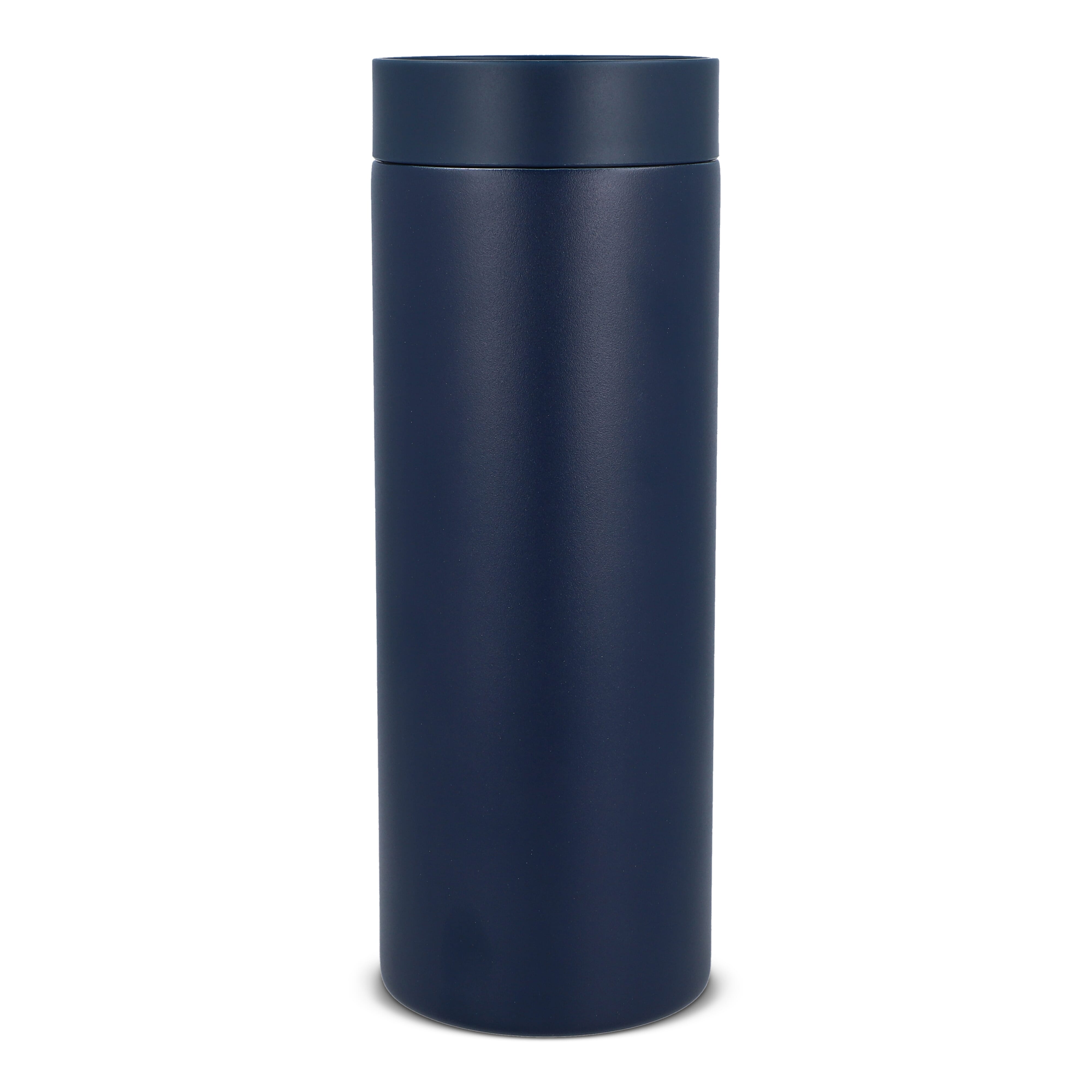 Moderner Thermobecher aus recyceltem Edelstahl (400 ml) mit einem cleveren Druckknopfdeckel und einer 360-Grad-Trinkmöglichkeit. Lasergravierte Logos mit Chromeffekt oder digitale Hochglanzlogos mit dezentem Effekt. Jedes Produkt ist in einer Geschenkbox verpackt.