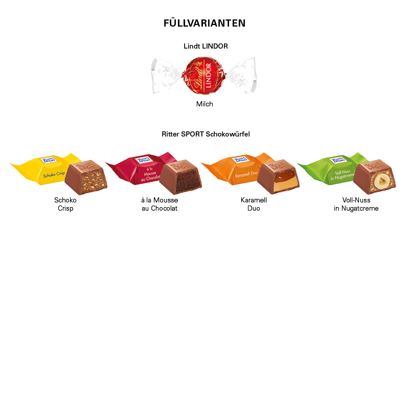 | Füllung: | 4 Ritter SPORT Schokowürfel |