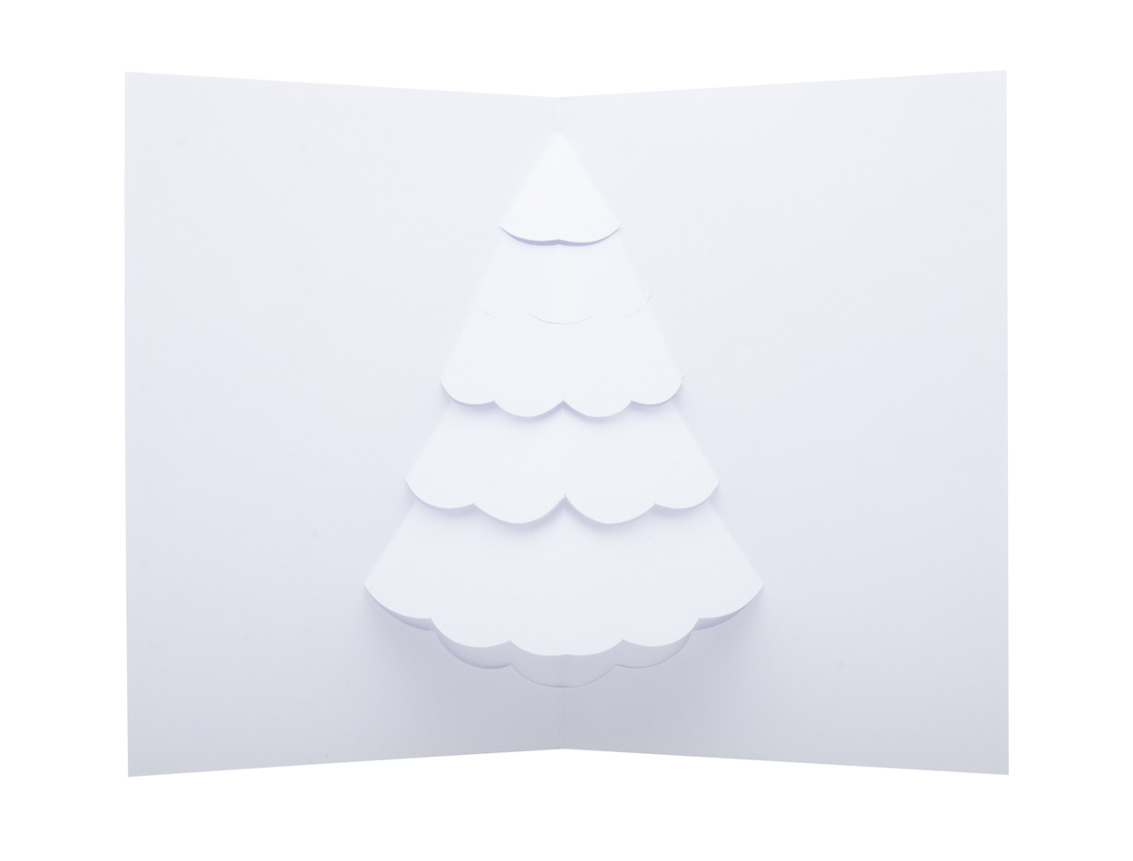 Individuelle Weihnachtskarte aus Papier mit dreidimensionaler Pop-up-Form. Der Preis ist inklusive Vollfarbigdruck auf beiden Seiten. Inklusive C6-Briefumschlag. Mindestbestellmenge: 100 Stk.