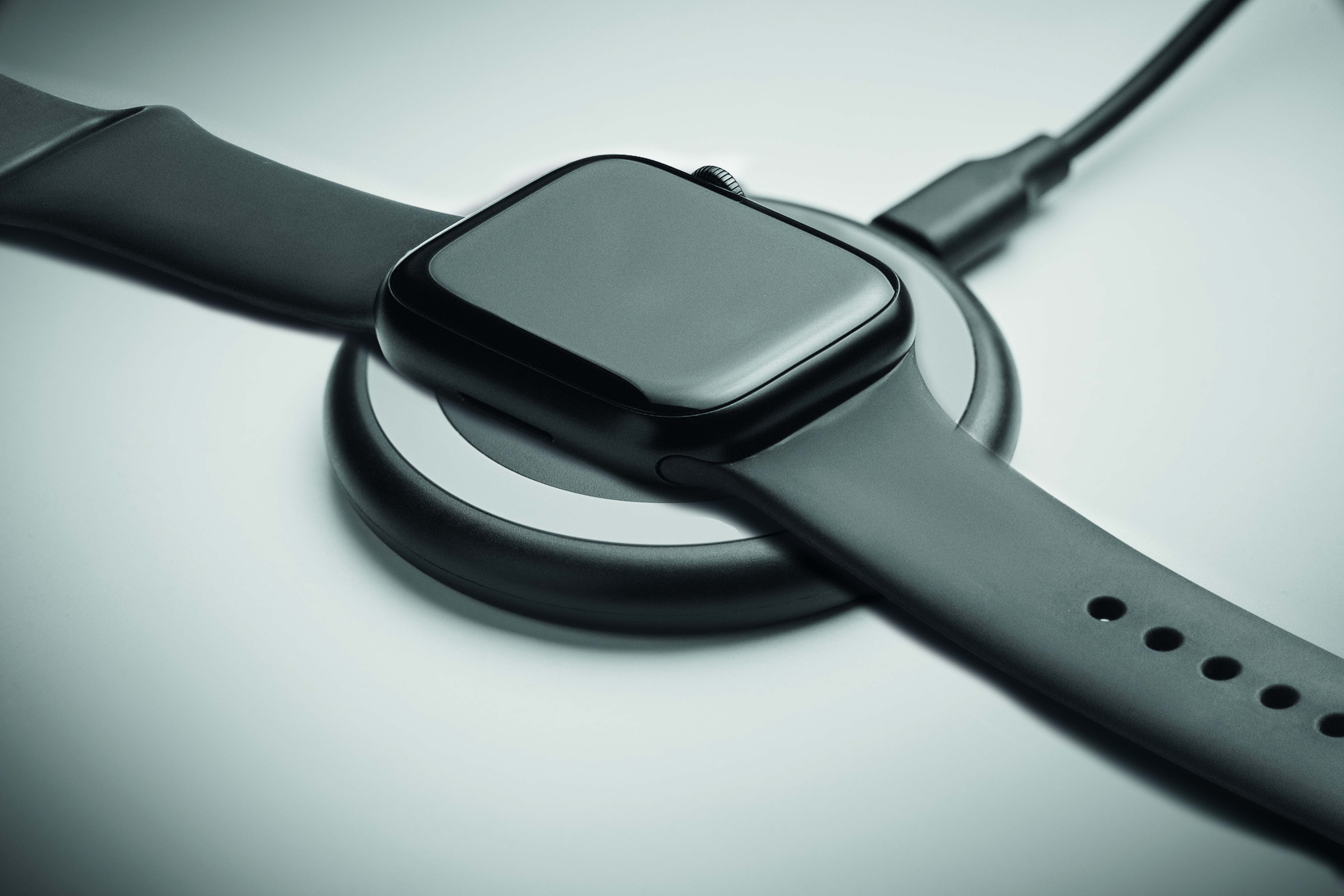 3in1 kabelloses Ladegerät 15W. Inkl. magnetische kabellose Ladestation 15W, Smartwatch-Ladepunkt (nur Apple®) und TWS-Ladepunkt. Kabellänge: 1m. Eingang: 2-in-1 Typ-C & Typ-A.
