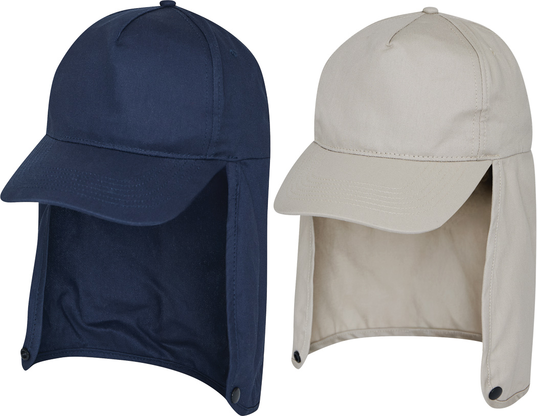 5-Panel-Baseball-Cap SOLGARD: verstärktes Frontsegment, 4 gestickte Luftlöcher, Knopf, Zuziehband mit Stopper zum Anpassen an die Kopfgröße, langer Nackenschutz mit Druckknopfverschluss — ideal für Outdooraktivitäten und zum Schutz vor Sonnenbrand, mit UPF 50+ Sonnenschutz