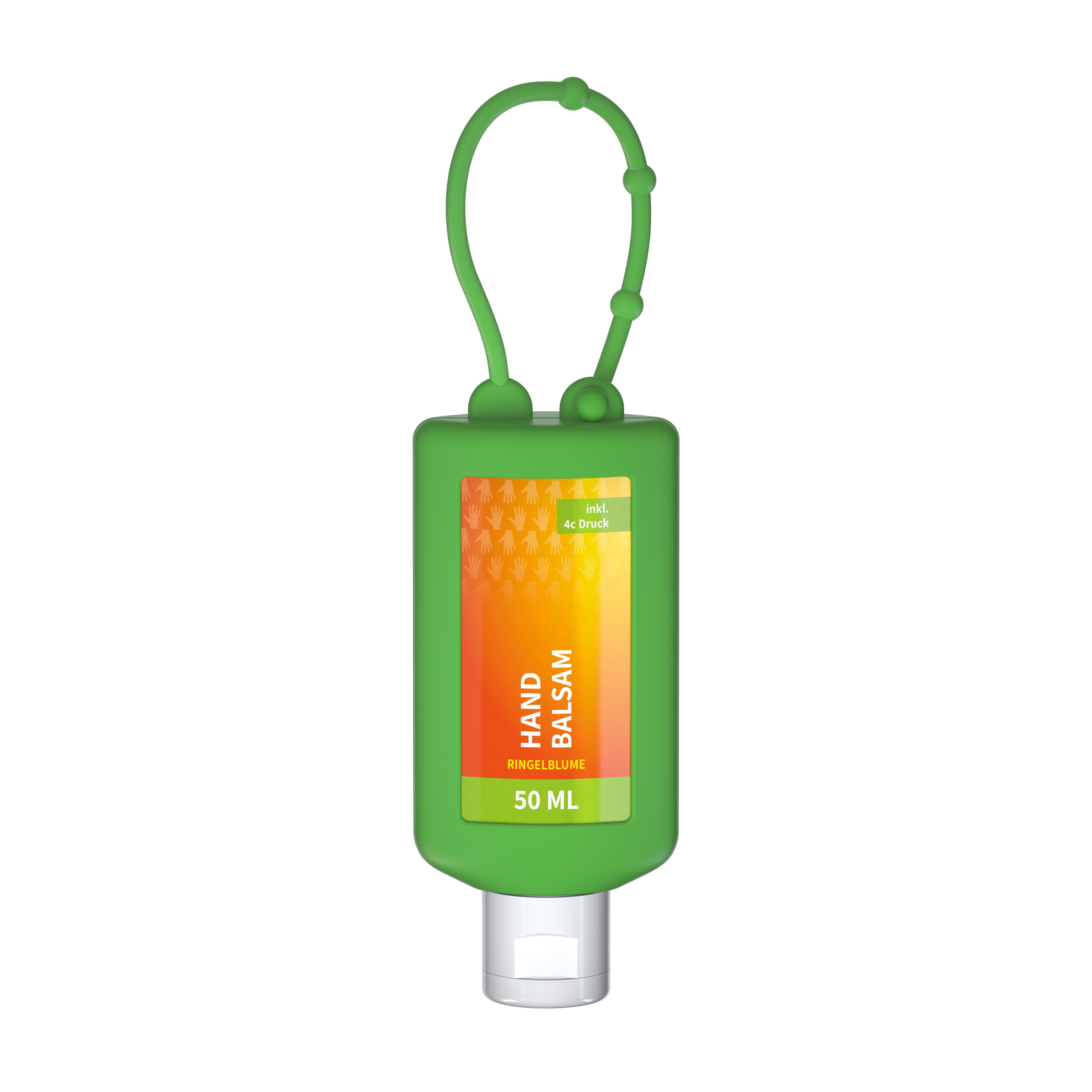 50 ml Bumper grün - Handbalsam "Ringelblume - Aloe Vera" - Body Label mit Logo für Neukundengewinnung.