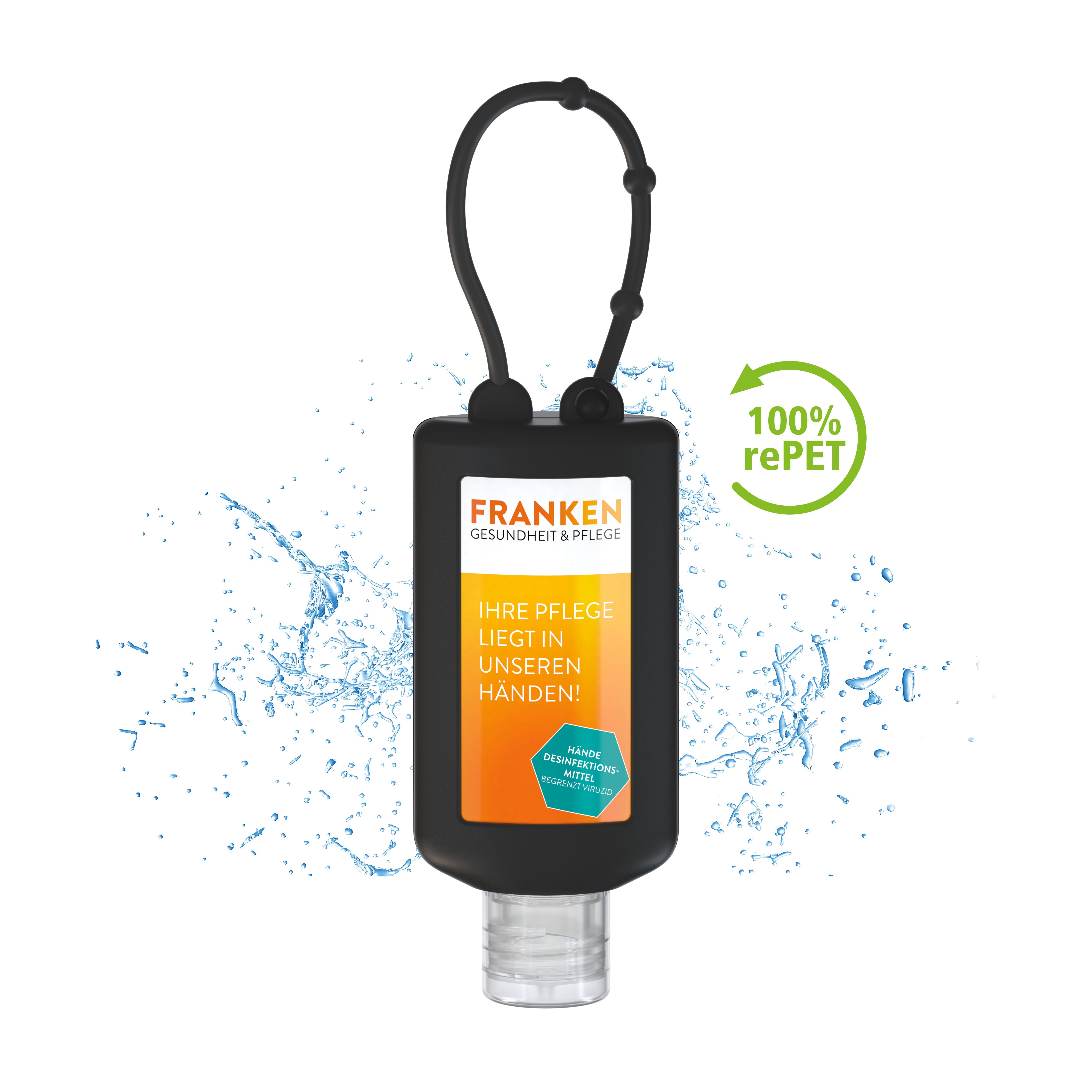 50 ml Bumper schwarz - Hände-Desinfektionsgel (DIN EN 1500) - Body Label als Giveaway mit Wunschmotiv.