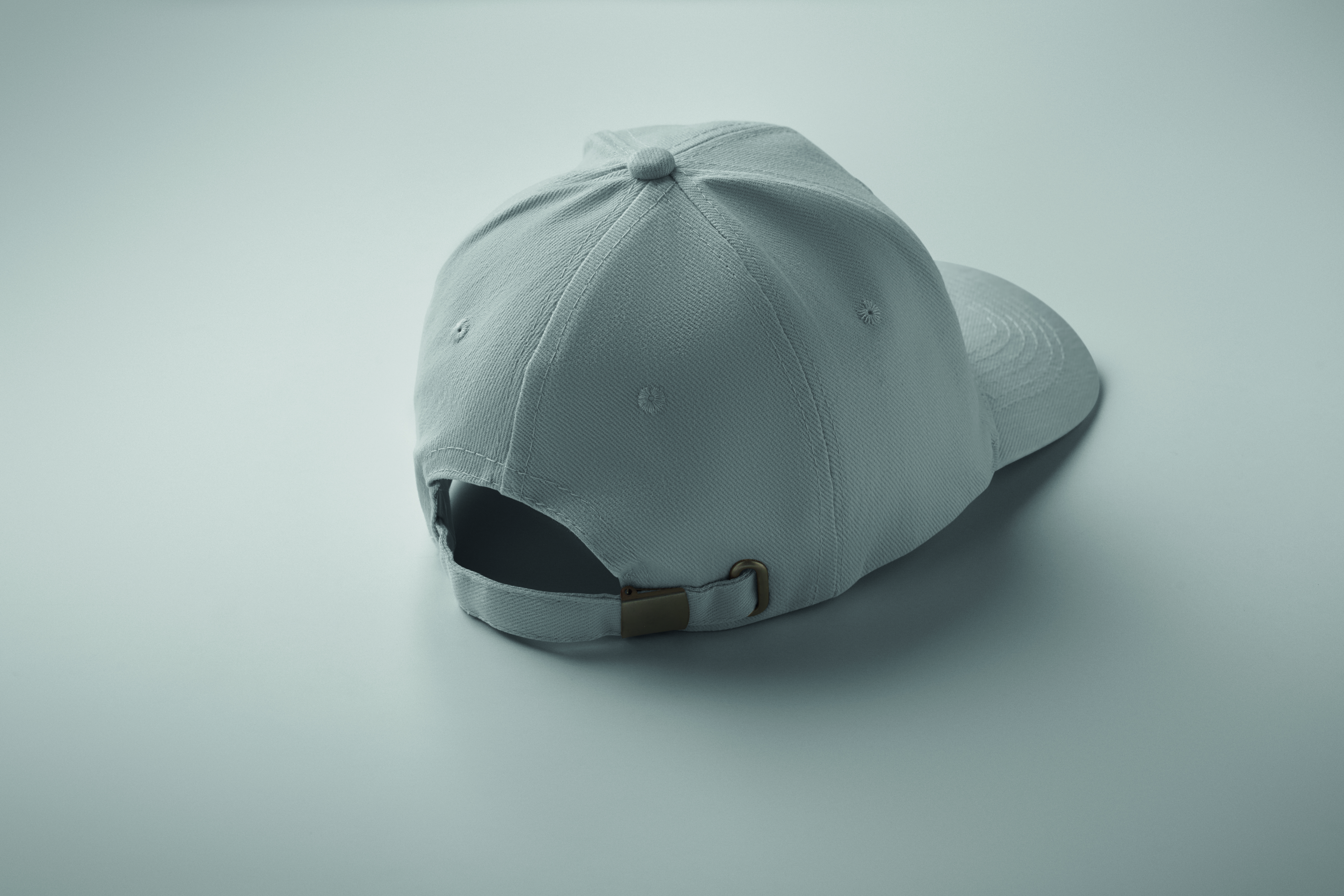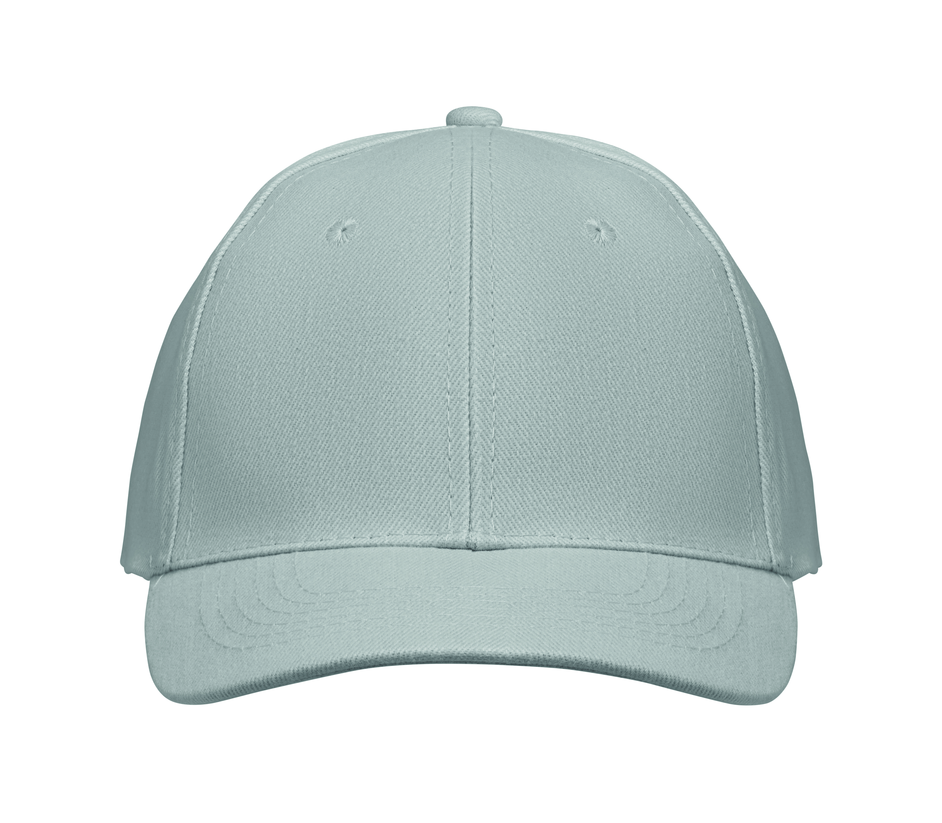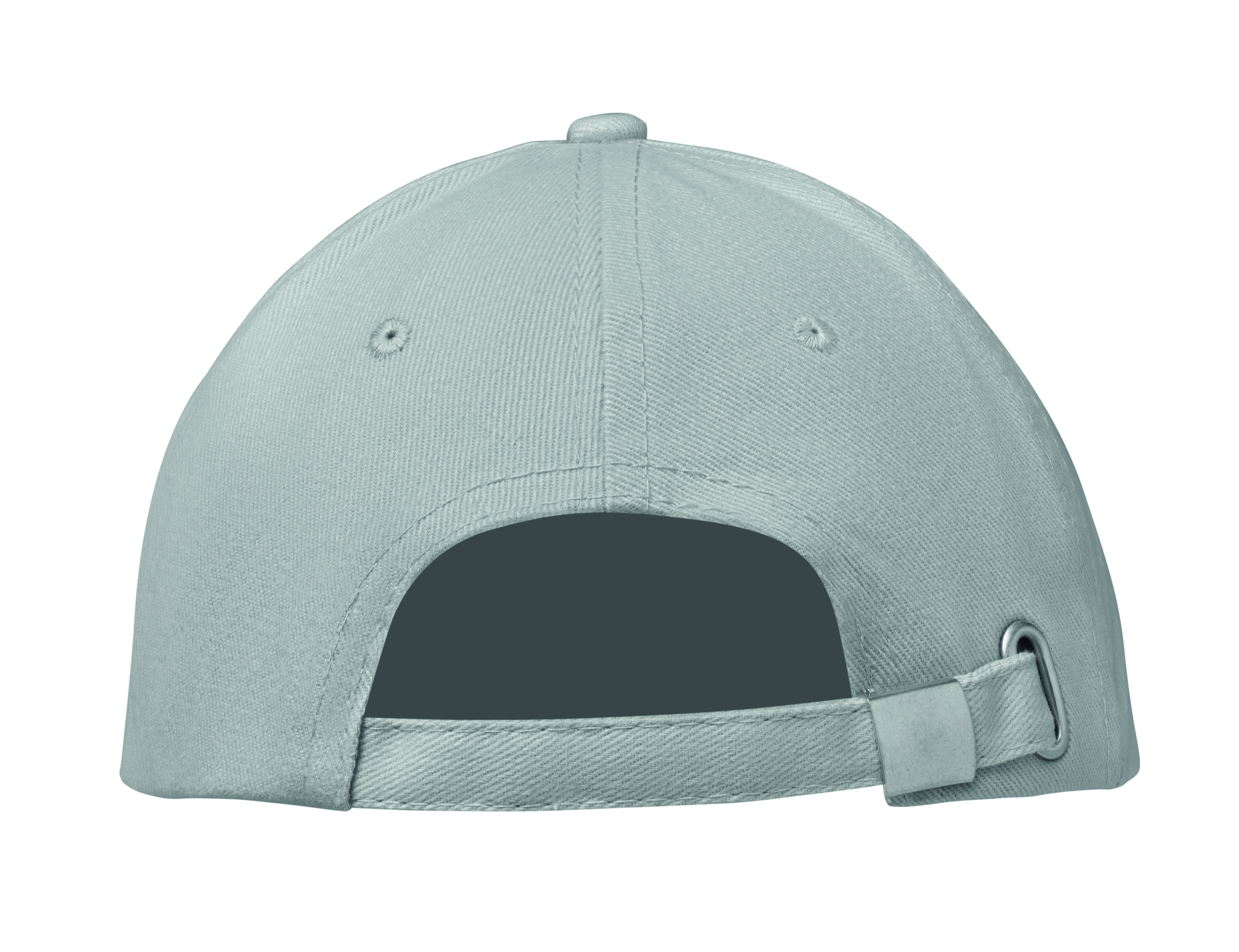 6-Panel-Baseball-Cap aus gebürsteter Baumwolle 260 g / m² mit silberner Schnalle aus Stahl mit Einstecklasche. Sechs farblich abgestimmte, umstickte Belüftungslöcher. Größe 7 1/4.