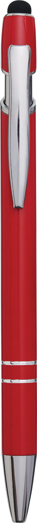 Aluminium-Kugelschreiber MERCHANT: mit glänzendem Aluminium-Schaft, Druckmechanismus, am Schaftende mit Touchscreen-Spitze, blauschreibend