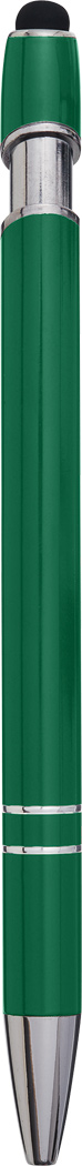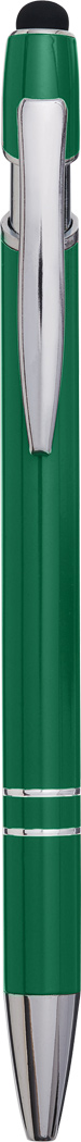 Aluminium-Kugelschreiber MERCHANT: mit glänzendem Aluminium-Schaft, Druckmechanismus, am Schaftende mit Touchscreen-Spitze, blauschreibend