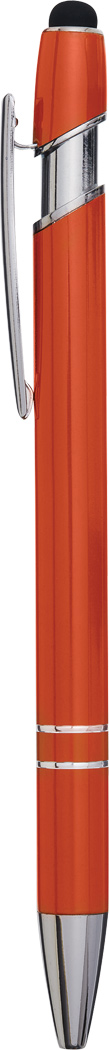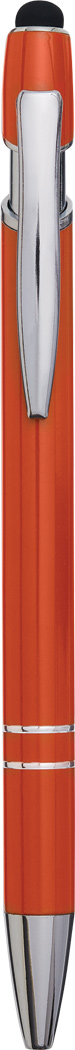 Aluminium-Kugelschreiber MERCHANT: mit glänzendem Aluminium-Schaft, Druckmechanismus, am Schaftende mit Touchscreen-Spitze, blauschreibend