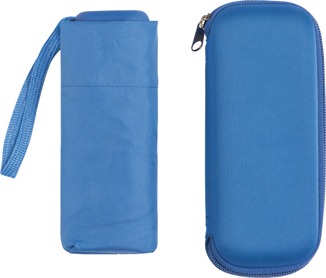 Aluminium-Mini-Taschenschirm POCKET mit farblich abgestimmtem Futteral, im EVA-Etui: 164g-leichtes Gestell, 5-teiliger Aluminiumstock, mit Aluminium- / Fiberglasspeichen und Metalltips, gummierter Griff mit Handschlaufe, Polyester-Pongee-Bespannung, Schließband mit Klettverschluss