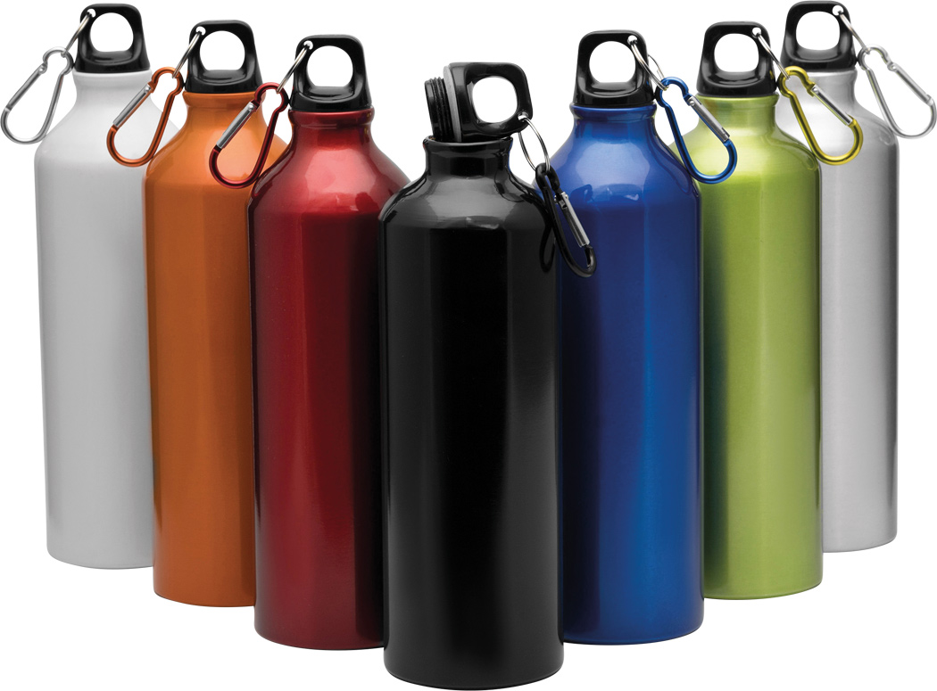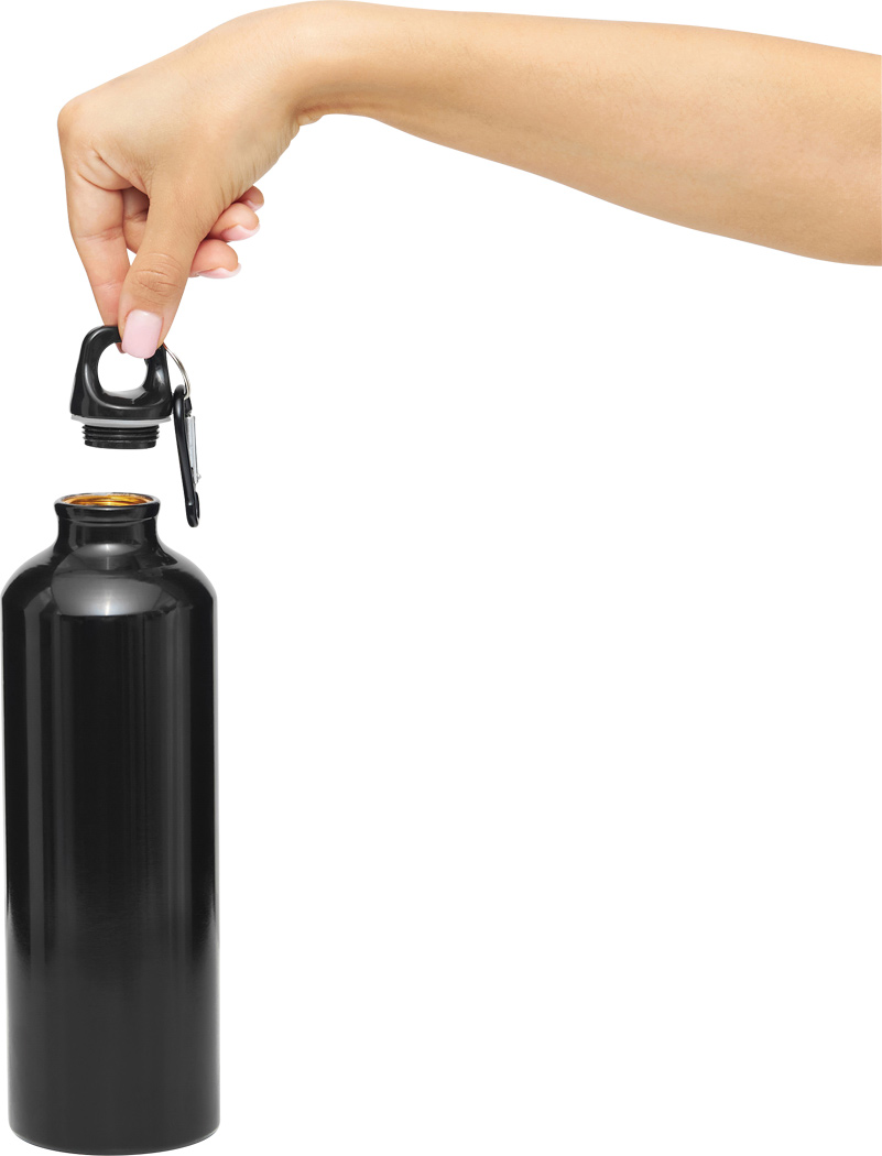 Aluminium-Trinkflasche BIG TRANSIT: Kunststoffverschluss mit farblich abgestimmtem Karabinerhaken (der Karabiner ist NICHT als Sicherung beim Klettern geeignet), Füllmenge ca. 750 ml