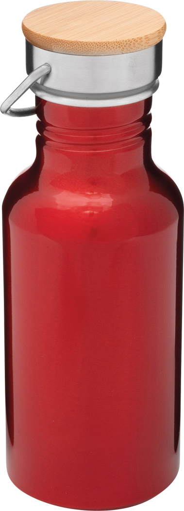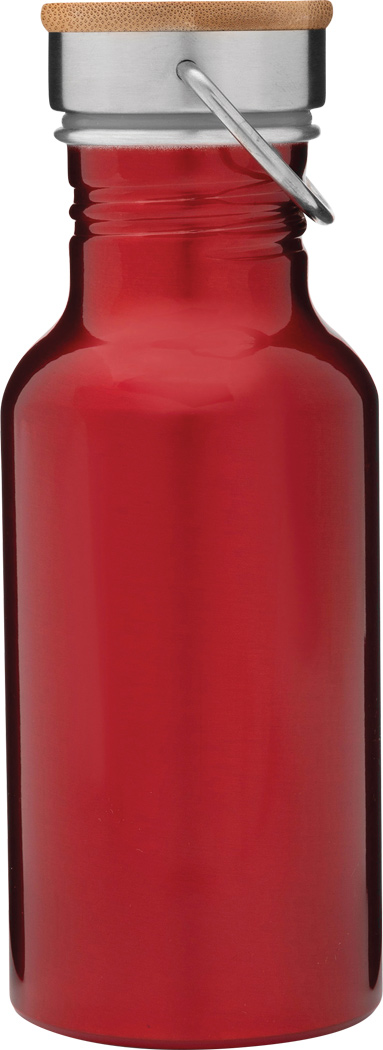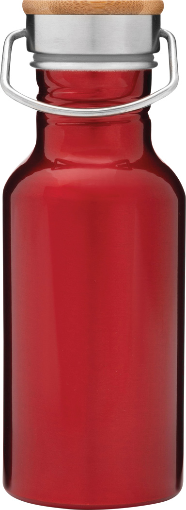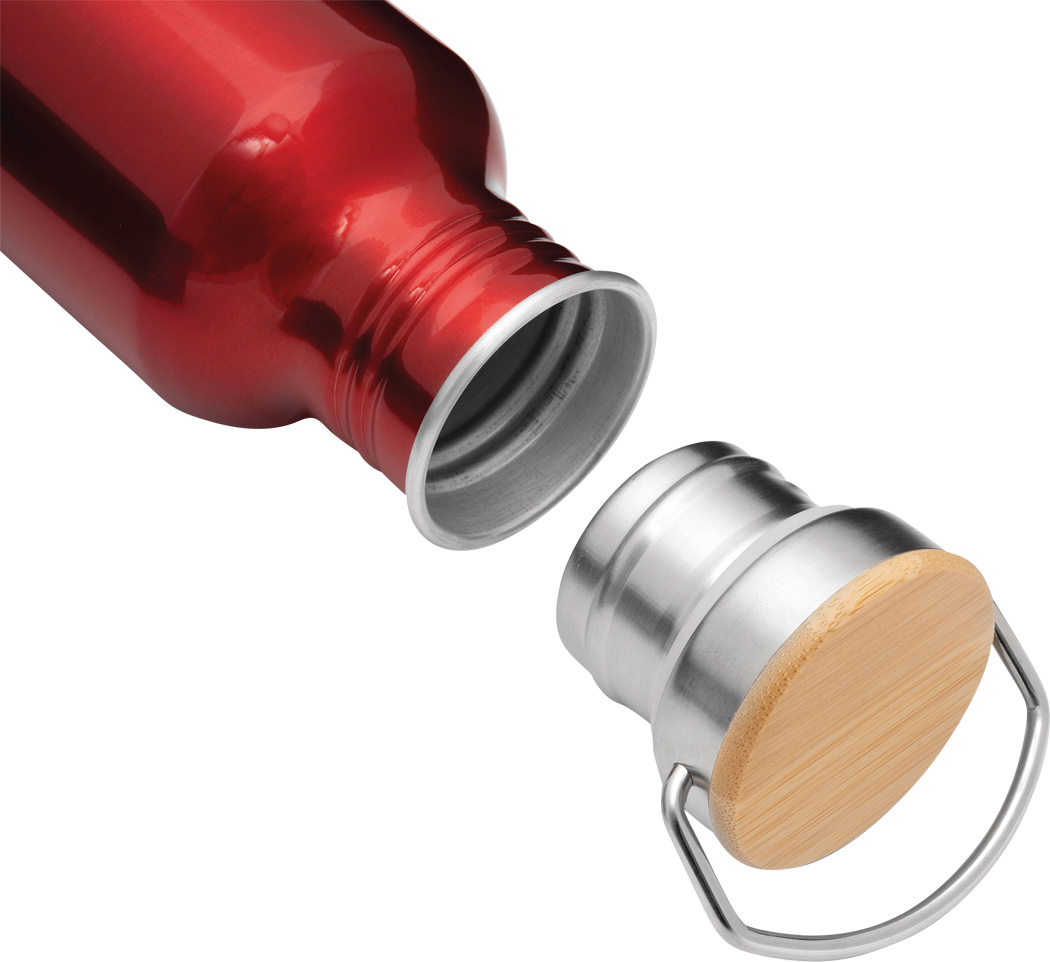 Aluminium Trinkflasche ECO TRANSIT: einwandig, Bambus-Deckel mit sicherem Schraubverschluss und Tragegriff, Füllmenge: ca. 550 ml