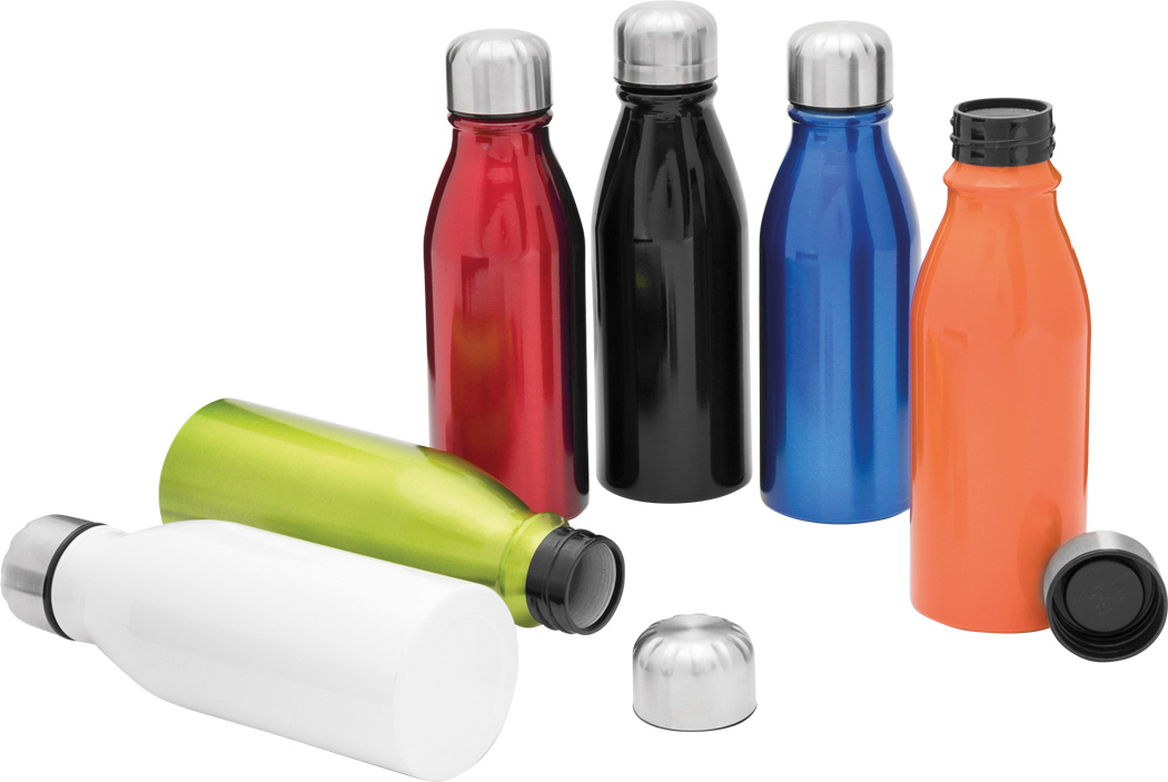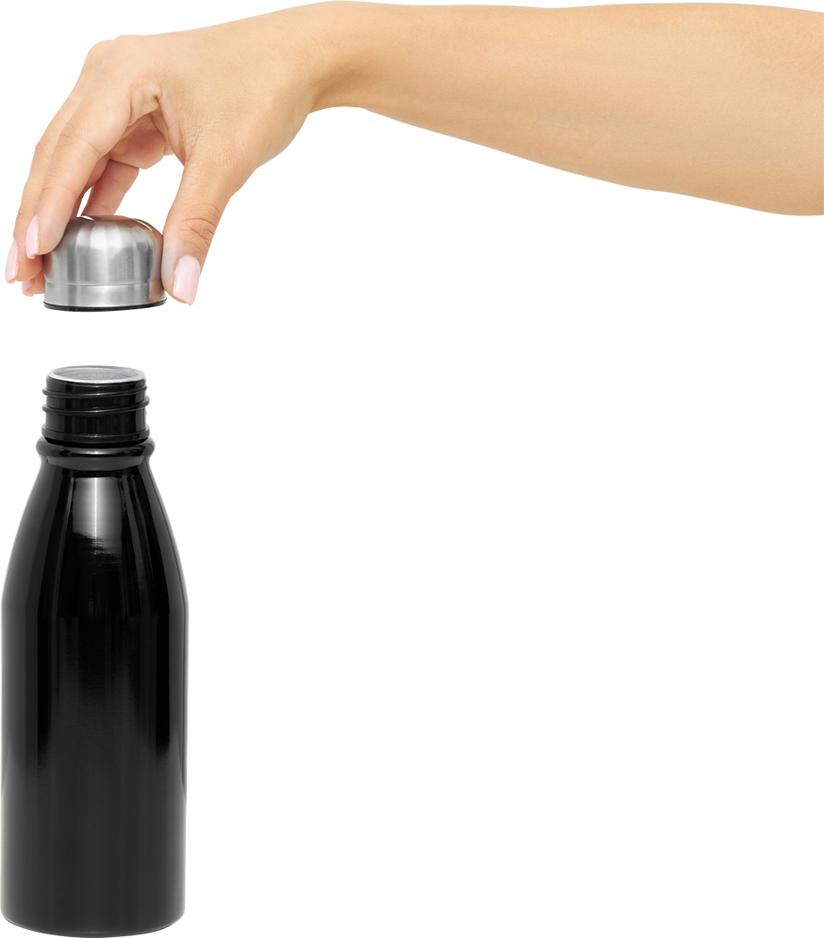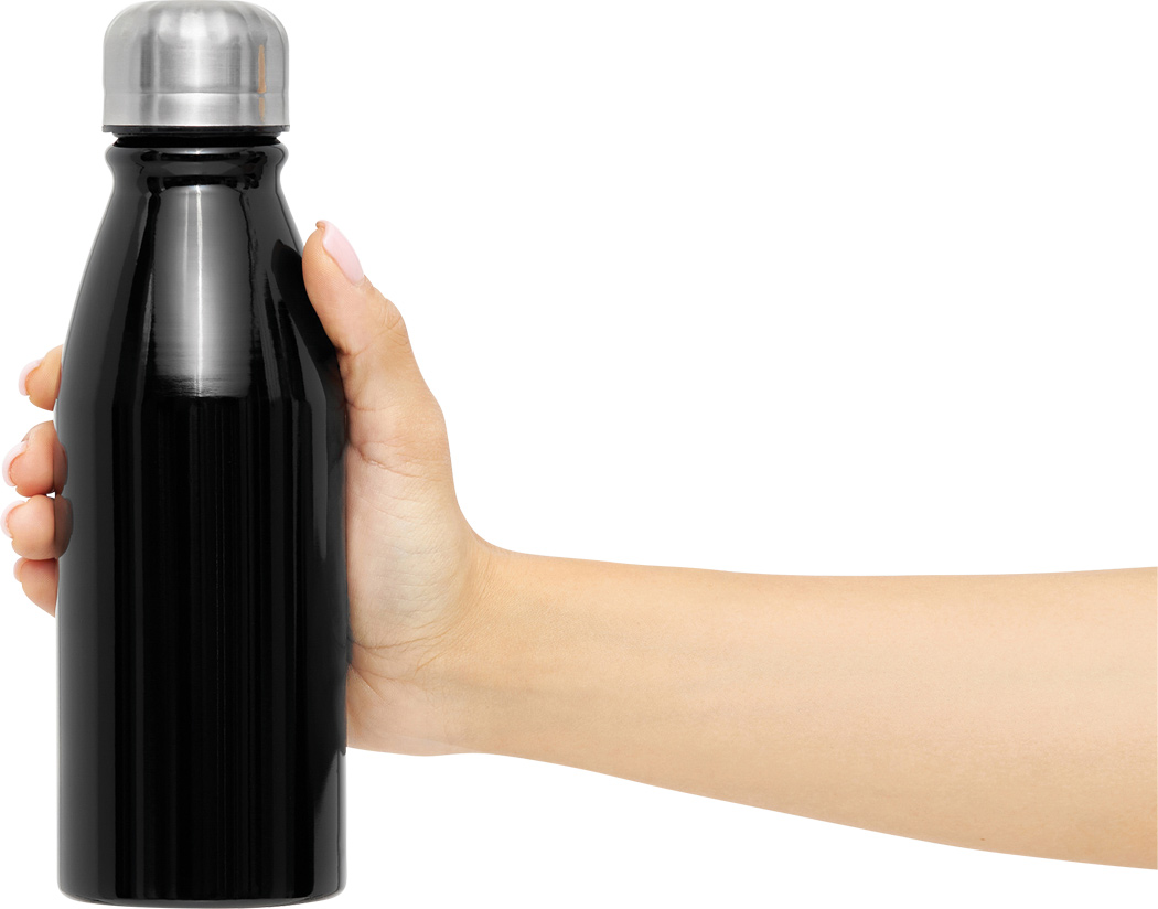 Aluminium Trinkflasche FANCY: einwandig, silberner Deckel mit sicherem Schraubverschluss, Füllmenge: ca. 500 ml