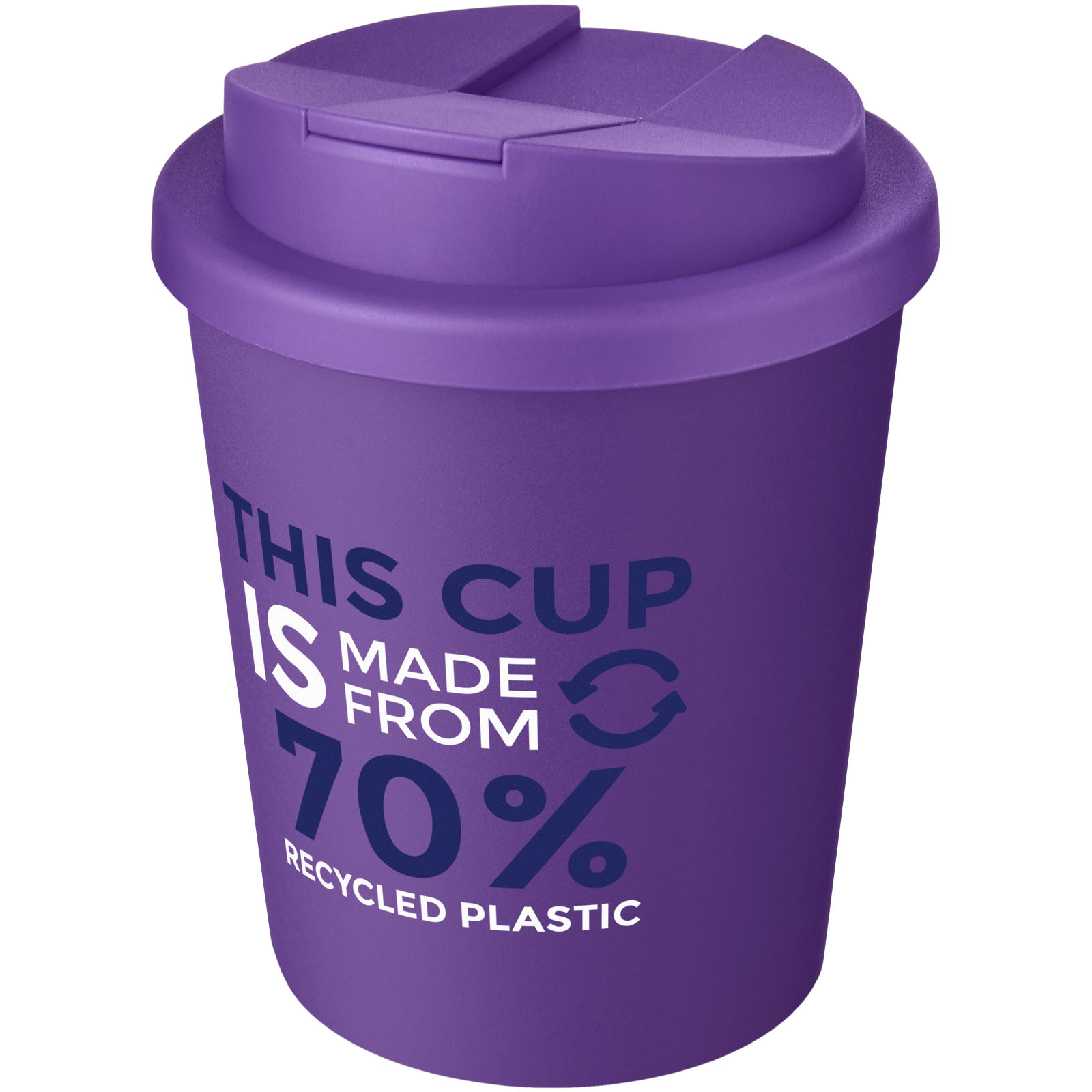 Doppelwandiger Isolierbecher mit einem drehbaren, auslaufsicheren Deckel. Geschlossene Befestigungsclips am Deckel verhindern das Verschütten, und der Becher wird ohne Silikon als vollständig recycelbar hergestellt. Der komplette Becher inkl. Deckel besteht zu 75% aus recyceltem Material: ein recycelter Becher mit schwarzer Innenwand und ein Standarddeckel. Die Schattierungen von Schwarz oder Weiß können variieren, und die weiße Variante hat aufgrund der Beschaffenheit des recycelten Materials einen strukturierten Farbeffekt. EN12875-1 konform; spülmaschinen- und mikrowellenfest. Das Fassungsvermögen beträgt 250 ml. Verpackt in einem recycelten PE-Kunststoffbeutel. Hergestellt in UK. BPA-frei.