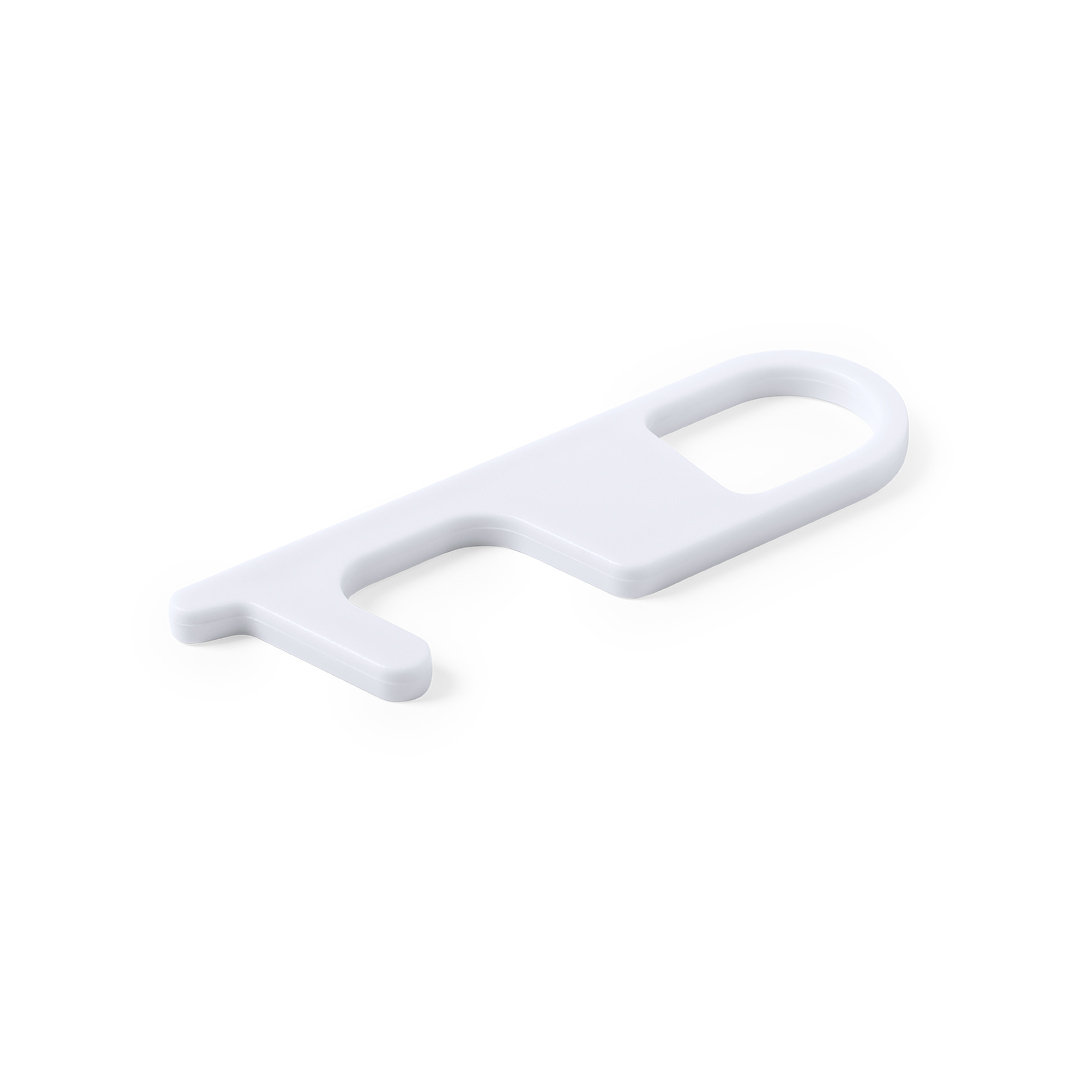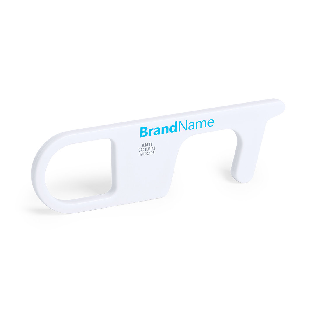 Hygienischer, antibakterieller und berührungssicherer Sicherheitsschlüsselanhänger, hergestellt aus widerstandsfähigem ABS mit einer soliden Verarbeitung. Speziell entwickelt, um das Berühren von Oberflächen im öffentlichen Bereich mit den Händen zu vermeiden (Türgriffe, Schalter, Wasserhähne im öffentlichen Bereich, Geldautomaten...). Mit komfortablem Ausschnitt für den Finger und in einer individuellen Tasche präsentiert. Empfohlen für Tampondruck. Produkte mit antibakterieller Behandlung sind in der Lage, die bakterielle Belastung der Materialoberflächen dank der Zugabe von permanenten statischen mikrobiellen Mitteln drastisch zu reduzieren, mit hoher Wirksamkeit bei der Hemmung und Verhinderung bakterieller Verunreinigungen. Artikel nach der Norm ISO 22196, die die antibakterielle Aktivität in Kunststoffen und auf nicht porösen Oberflächen bestimmt. Dies erlaubt es uns, die Wirksamkeit der Bakterienhemmung, die die Zusatzstoffe auf den behandelten Artikeln haben, anhand einer quantitativen Bewertung zu bestimmen.