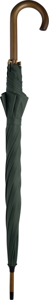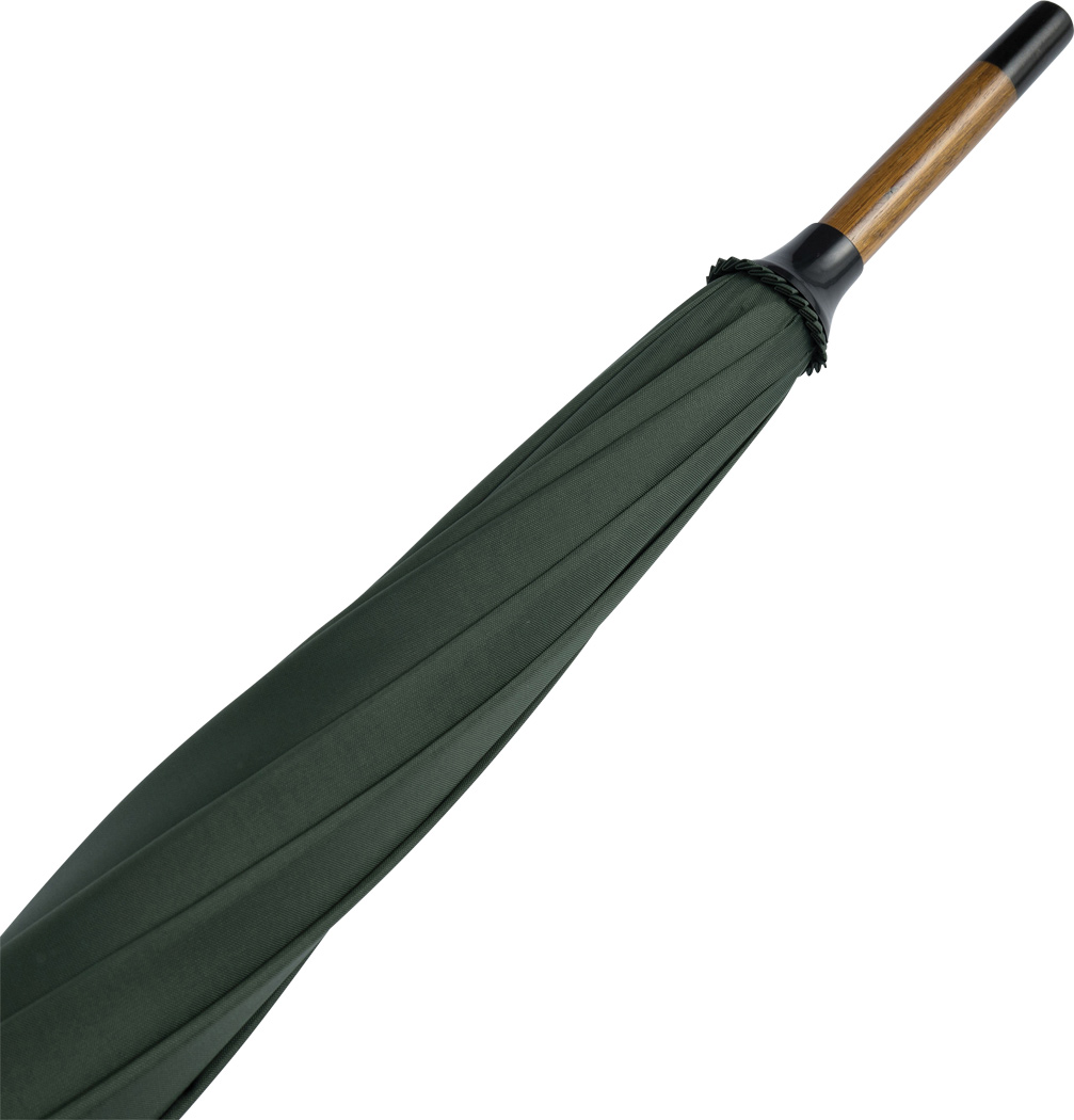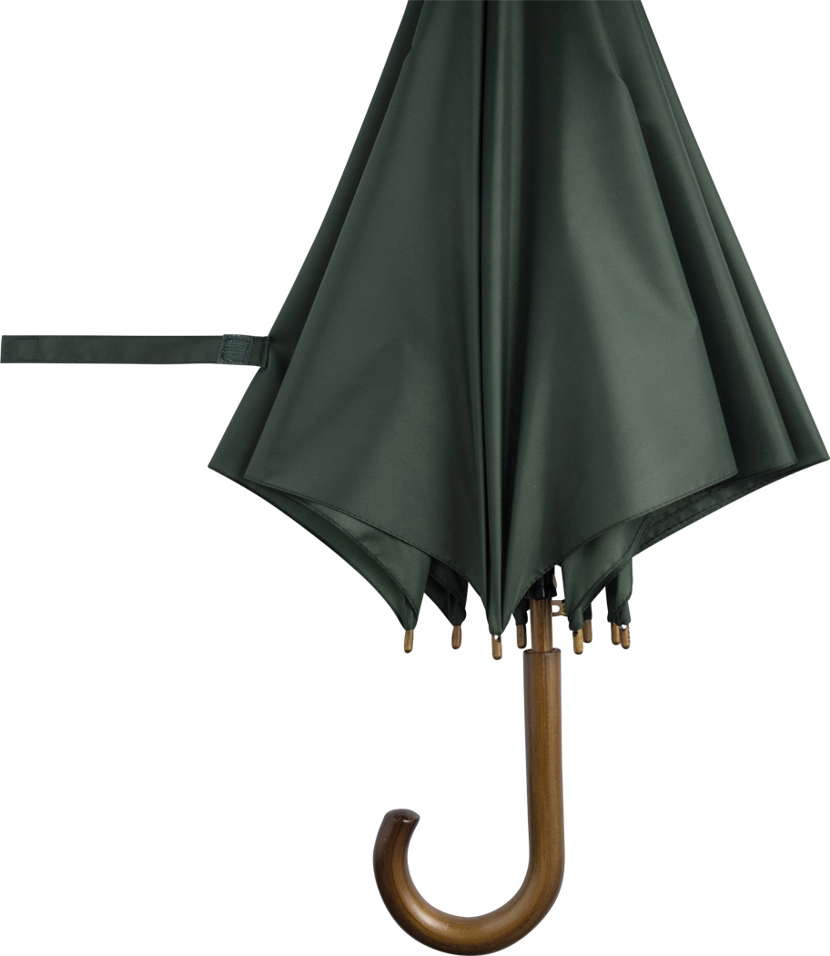 Automatik-Holzstockschirm BOOGIE: Metallspeichen, Holztips und -Rundhakengriff, Nylon-Bespannung, Schließband mit Klettverschluss