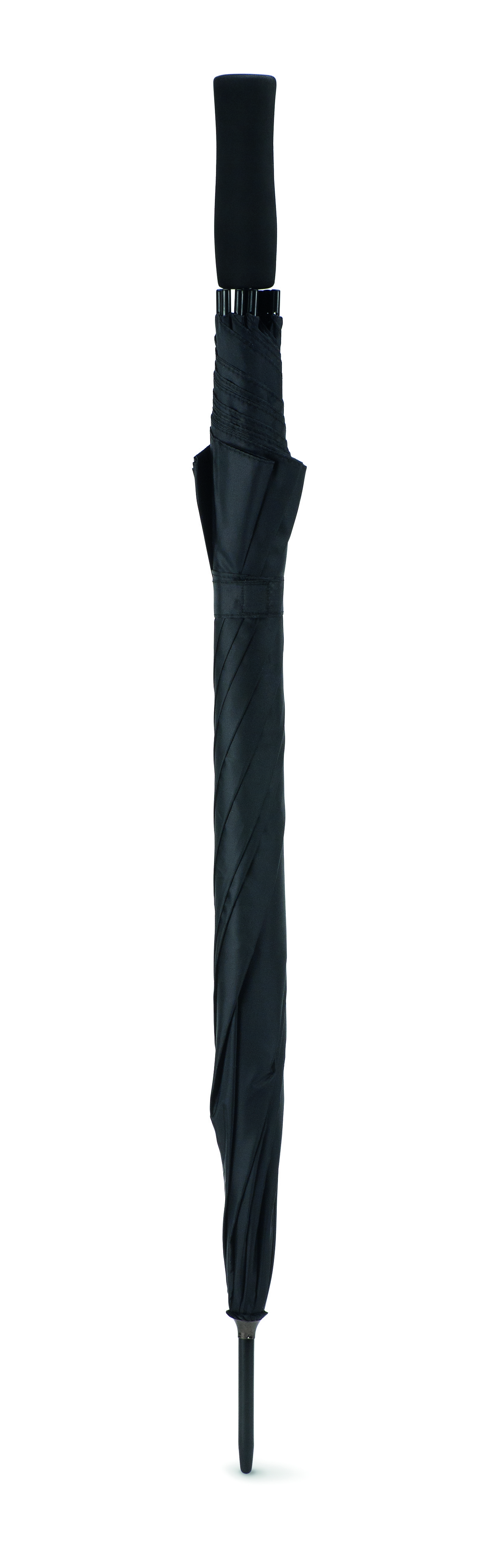 23'' Regenschirm aus 190T Pongee. Stock und Schienen aus schwarz überzogenem Metall, Spitzen aus schwarzem Kunststoff. Schwarzer EVA Griff. Automatische Öffnung, manuelle Schließung.