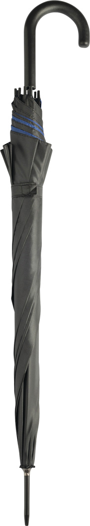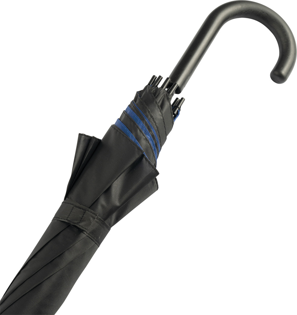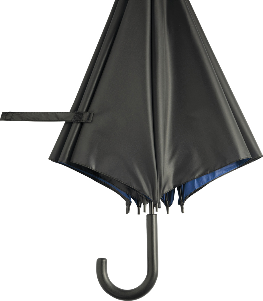 Automatik-Stockschirm DOUBLY: Metallstock und -speichen, Kunststofftips und -Rundhakengriff, doppelt bespanntes und zweifarbiges Schirmdach, Polyester-Bespannung, Schließband mit Klettverschluss