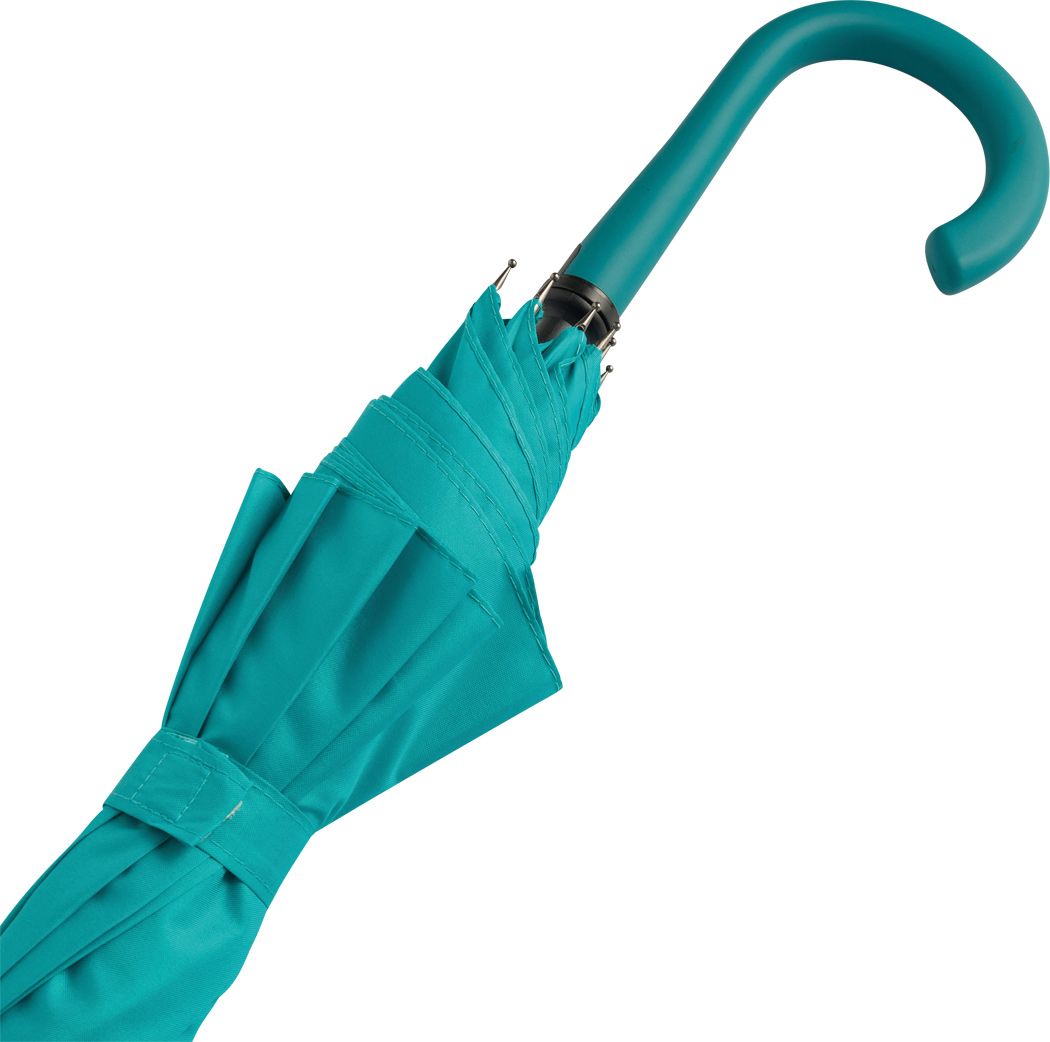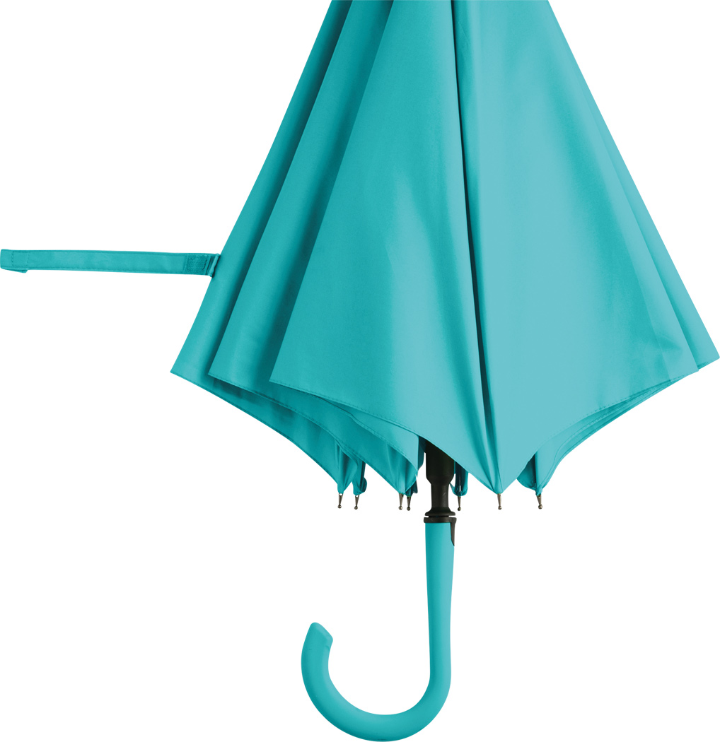 Automatik-Stockschirm LAMBARDA: Metallstock, Fiberglasspeichen, Metalltips, gummierter Rundhakengriff mit integrierter Auslösetaste, Polyester-Pongee-Bespannung mit stark wasserabweisender Spezialbeschichtung, Schließband mit Klettverschluss