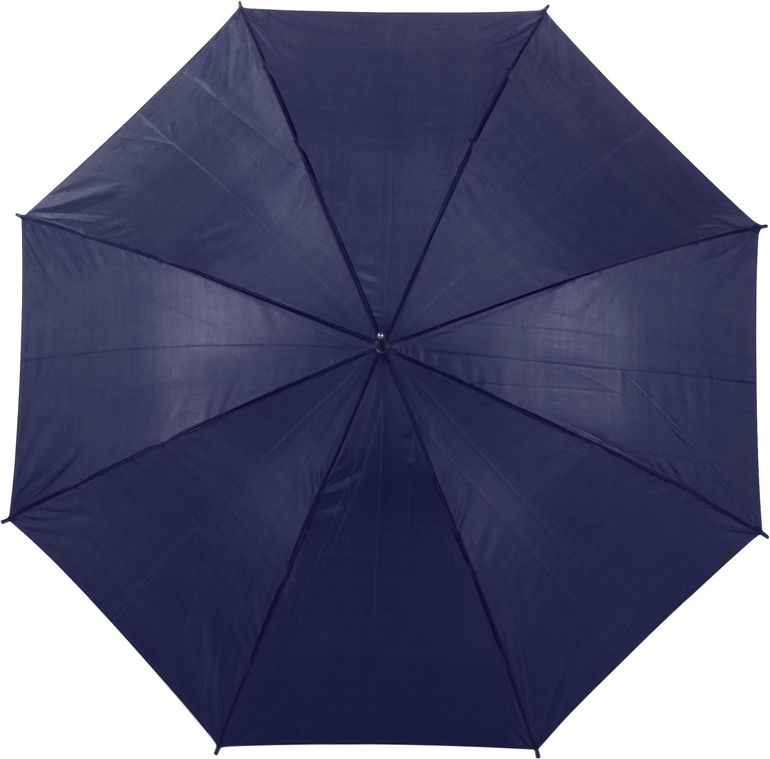 Automatik-Stockschirm aus Polyester (170T), Krücke und Tips aus Kunststoff, Schaft, Gestell und Spitze aus Metall.