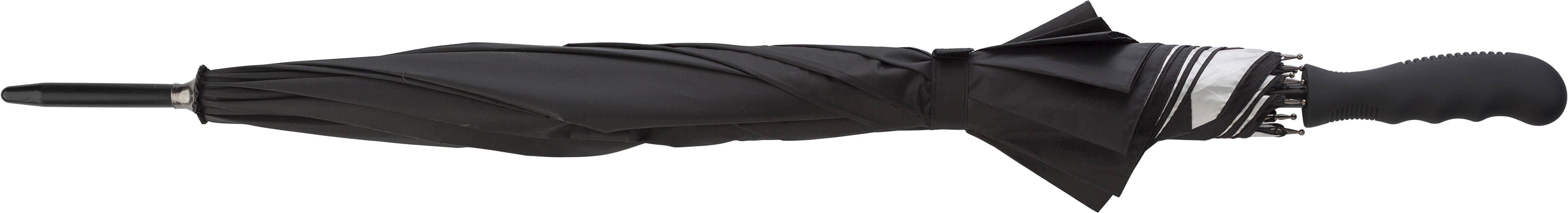 Automatikschirm 'Markus' aus Polyester (190T) mit acht Segmenten. Das Gestell ist aus Metall. Ein Druckknopf öffnet den Schirm automatisch.