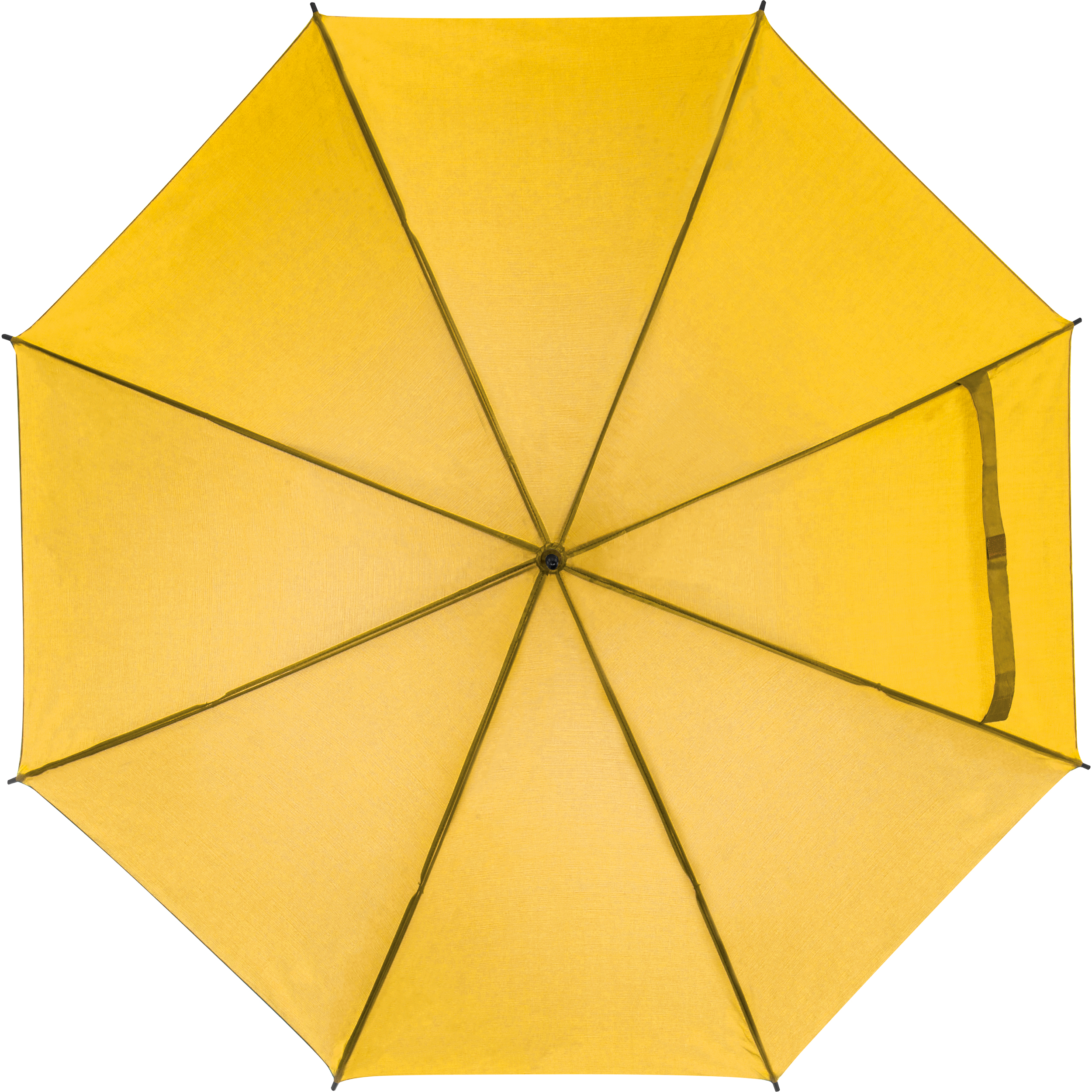 Automatikstockschirm aus 170T Polyester in vielen Unifarben mit geradem Holzgriff und Metallspitzen. Ihre Werbung drucken wir auf den unteren Teil eines Segments.