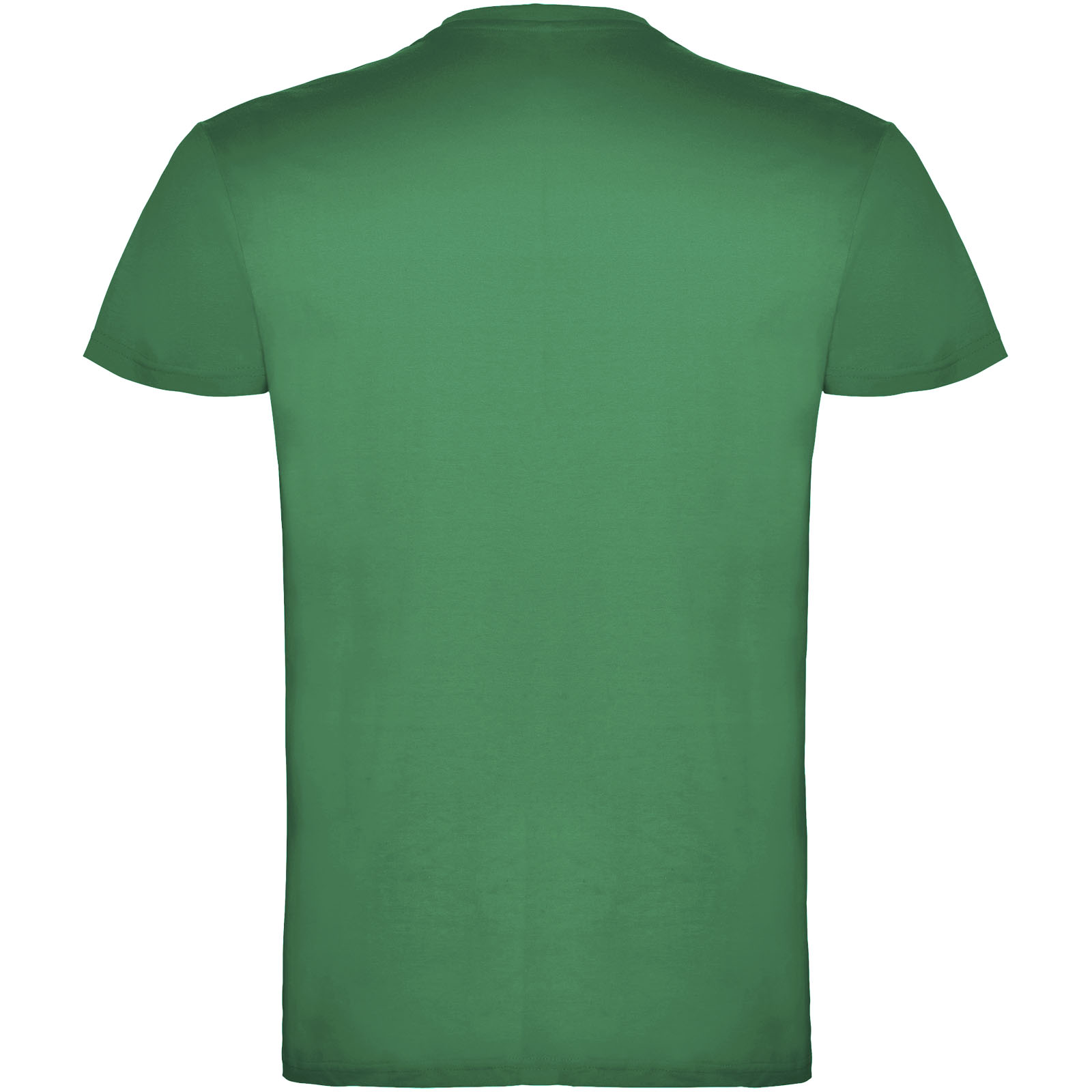 Kurzärmeliges T-Shirt mit doppellagigem Rundhalsausschnitt aus Elasthan, hergestellt aus schlauchförmigem Material für Erwachsene. Verstärkte und verdeckte Nähte am Kragen. Herausnehmbares Etikett. Das Modell ist 190 cm groß und trägt Größe L.