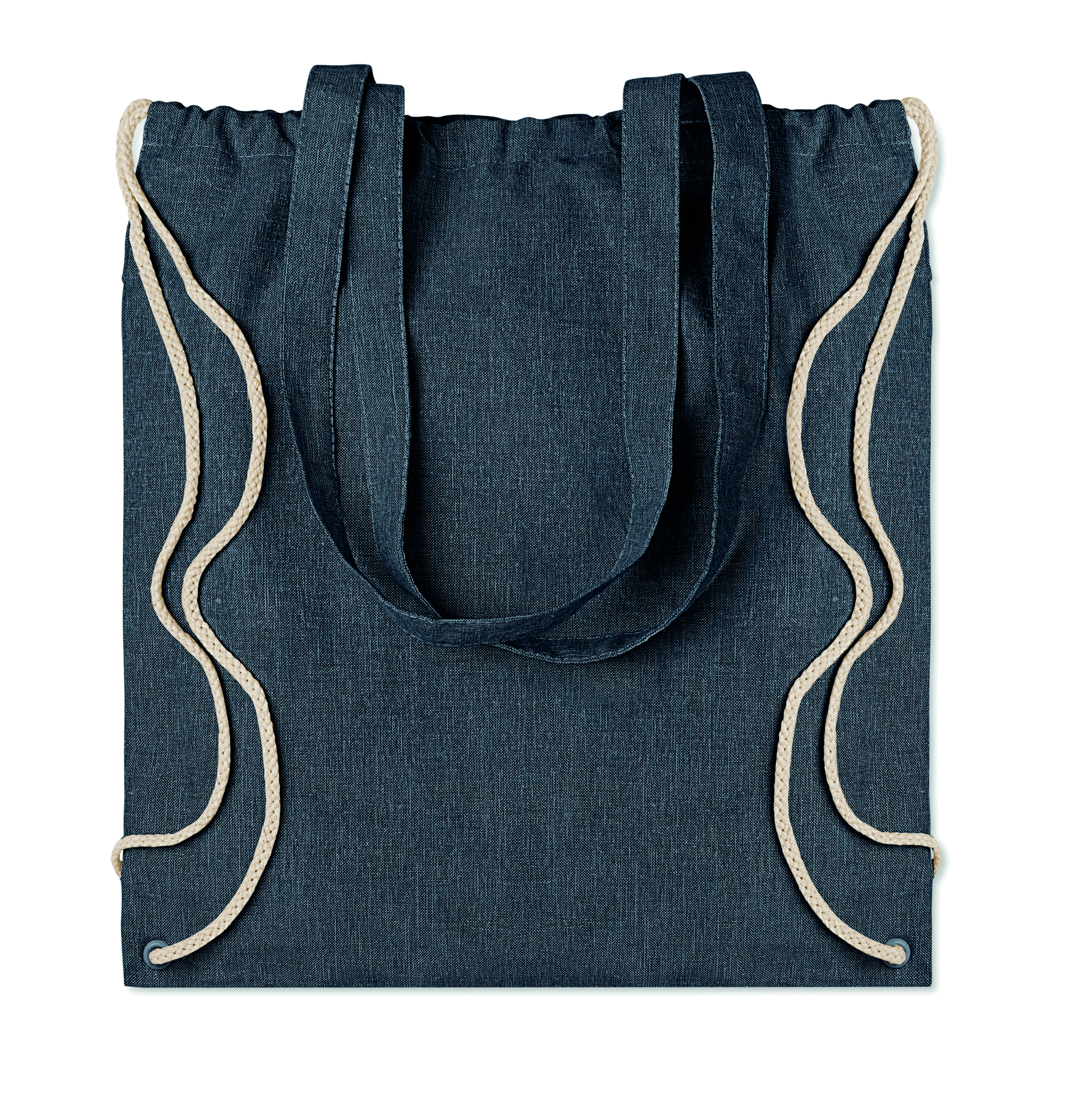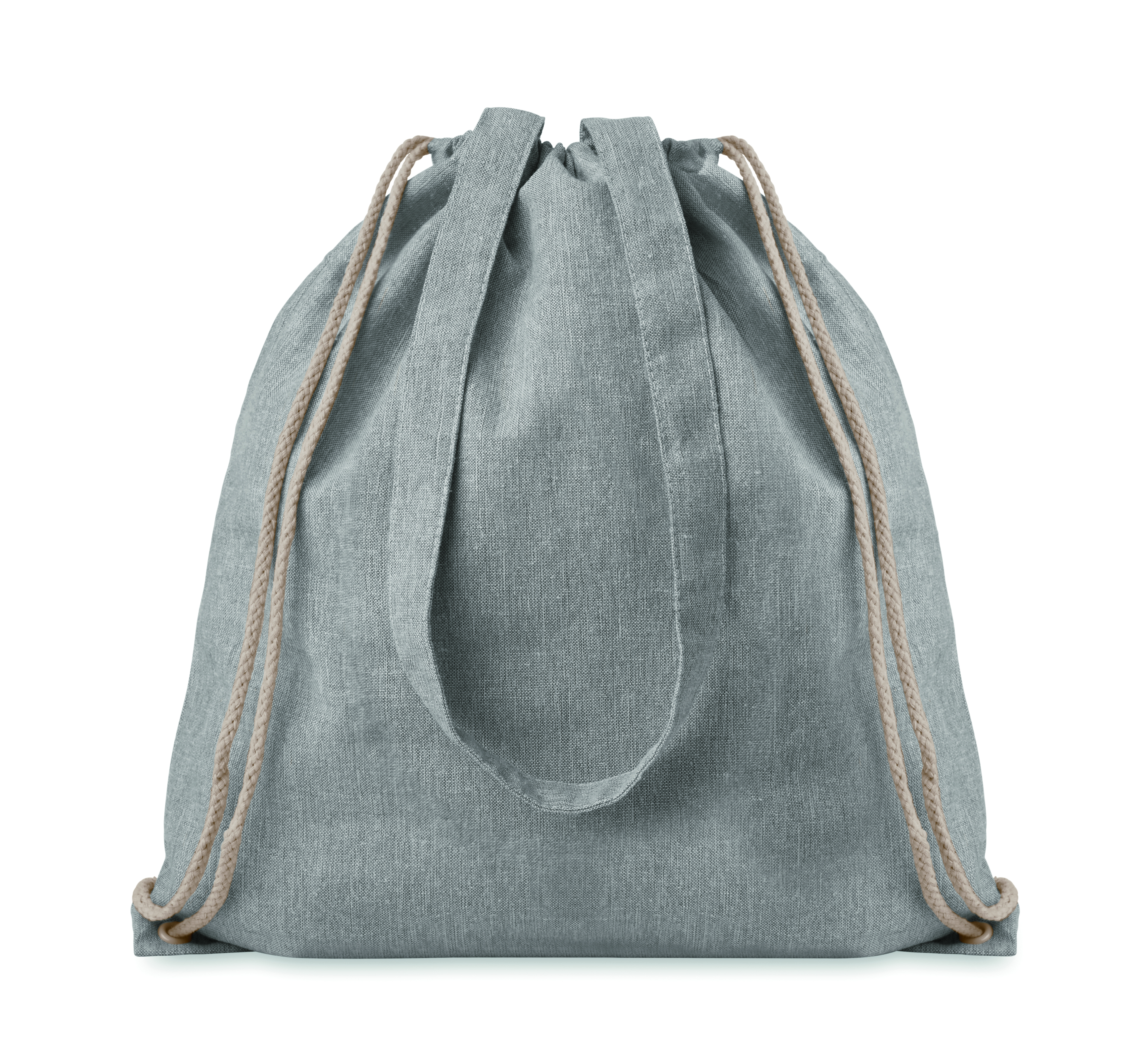 2 tone (recycelte Baumwolle und recyceltes Polyester) Einkaufstasche mit Kordelzug und langen Henkeln (20%/80%). ca. 140 gr / m². Dieser Artikel kann nach dem Bedrucken schrumpfen.