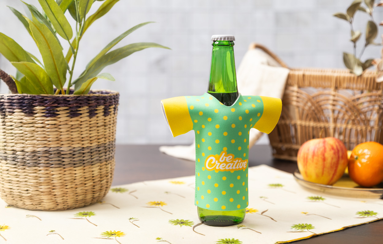 Bierflaschenkühler aus RPET PrintBeer mit Logo für Marketingaktionen.