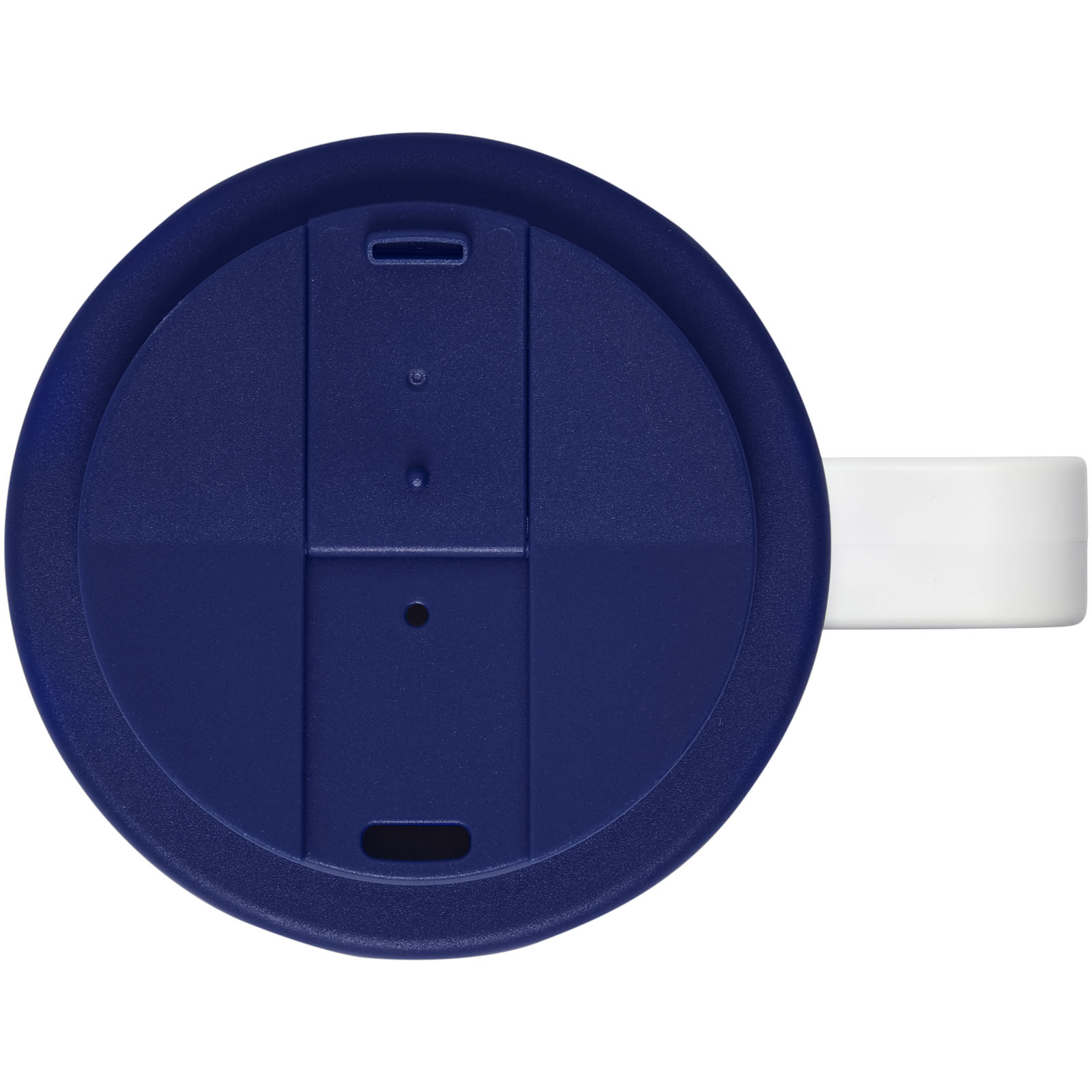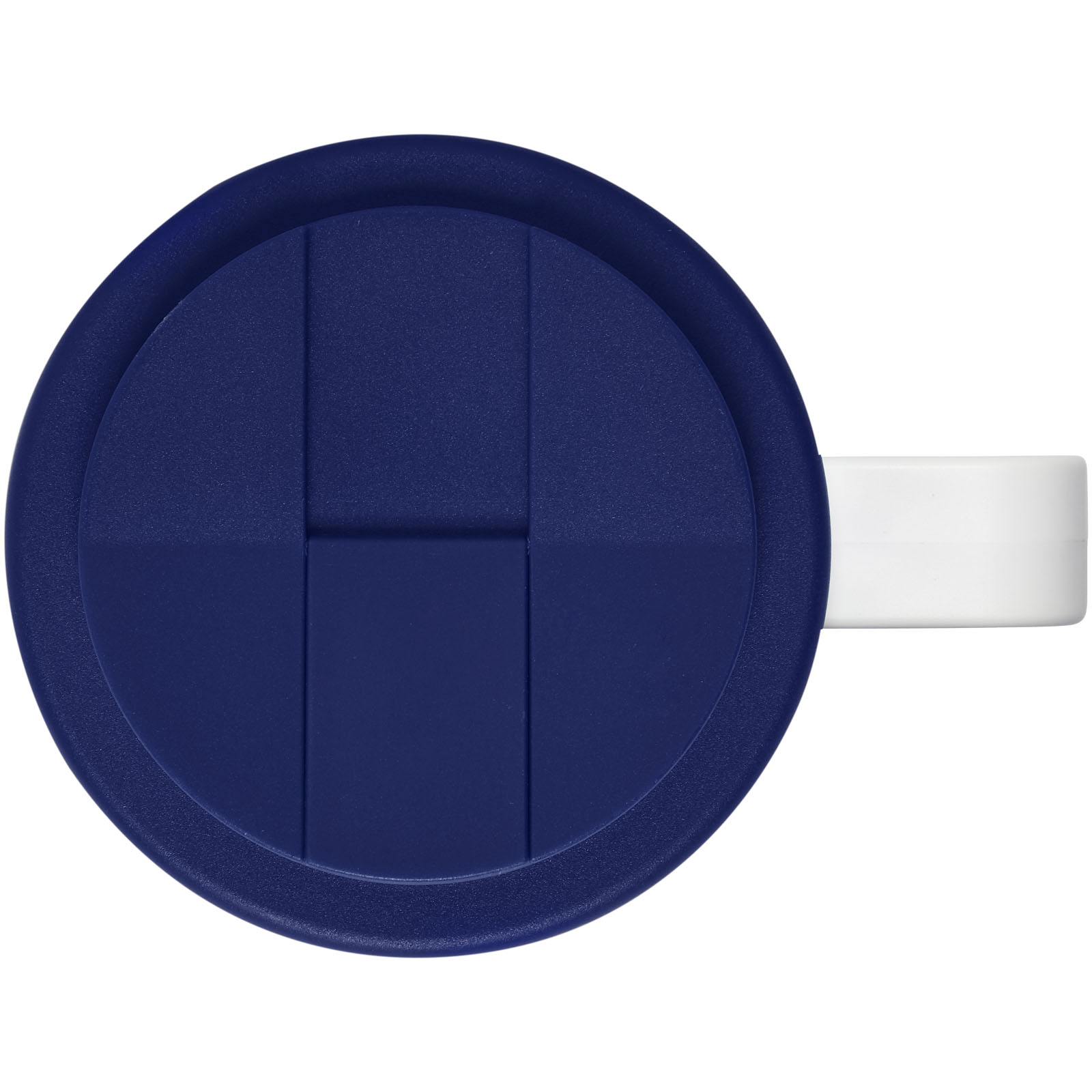 Doppelwandiger Isolierbecher mit aufschraubbarem, auslaufsicherem Deckel. Die äußere Schicht des Bechers ist aus recyceltem Kunststoff hergestellt. Der Becher verfügt über ein vollfarbiges, umlaufendes Design, das an das Produkt angepasst ist – für Strapazierfähigkeit und Haltbarkeit. EN12875-1 konform; spülmaschinen- und mikrowellenfest. Trinköffnung mit Clip verhindert auslaufen und schließt ohne Silikon. Das Fassungsvermögen beträgt 350 ml. Mischen und kombinieren Sie Farben, um Ihren perfekten Becher zu kreieren. Hergestellt in Großbritannien. Verpackt, in einer weißen Geschenkschachtel. BPA-frei. EN12875-1-konform, spülmaschinen- und mikrowellengeeignet.