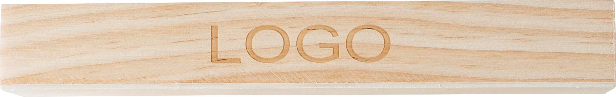 Buntstiftset in Holzbox, Deckel mit Linealaufdruck, 12-tlg., mit Kunststoff-Anspitzer, Radiergummi und lange Buntstiften in verschiedenen Farben.
