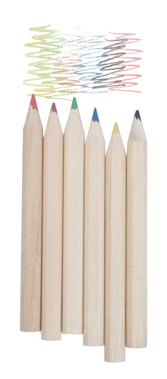 6 naturfarbene Buntstifte in Pappschachtel.