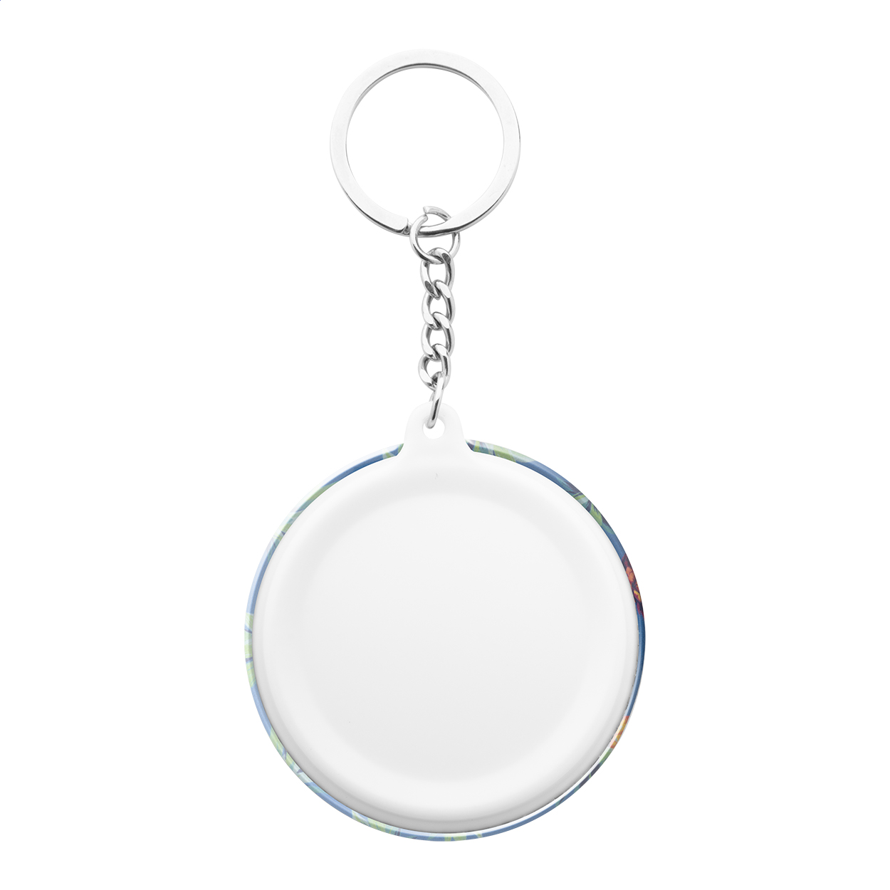 Kleiner Button-Schlüsselanhänger mit individuellem Papiereinleger. Der Preis ist inkl. Digitaldruck. Mindestmenge: 100 Stk.