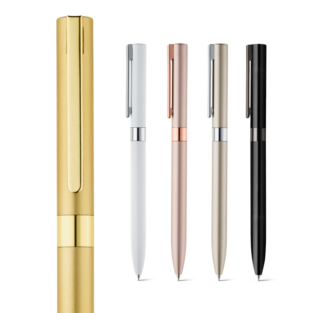 Kugelschreiber aus Recyceltes Aluminium (100% rAL) mit Drehmechanismus und Metallclip. Verfügbar in eleganten Farben. ø10 x 140 mm