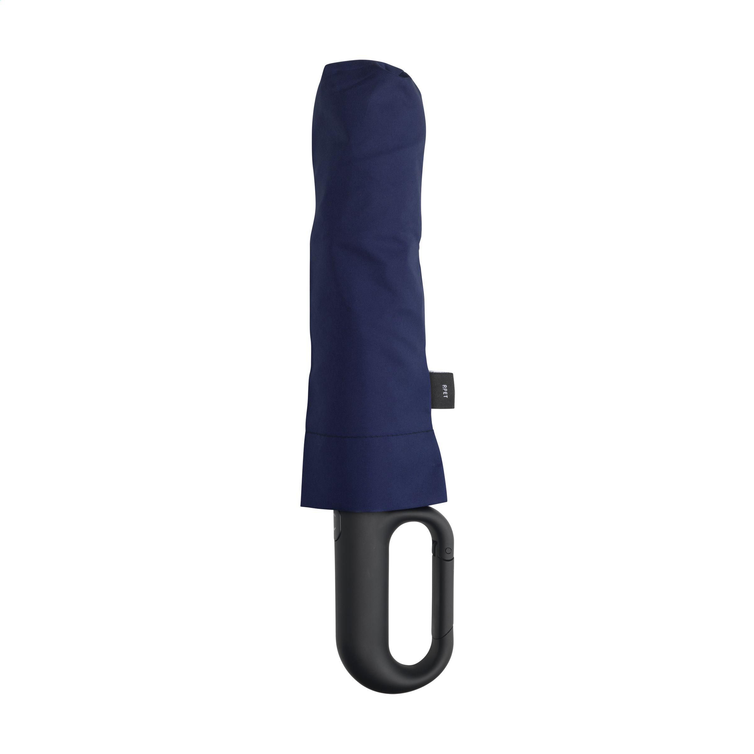 Carabiner RCS RPET faltbarer Regenschirm 21 inch als Werbegeschenk individuell gestaltet.