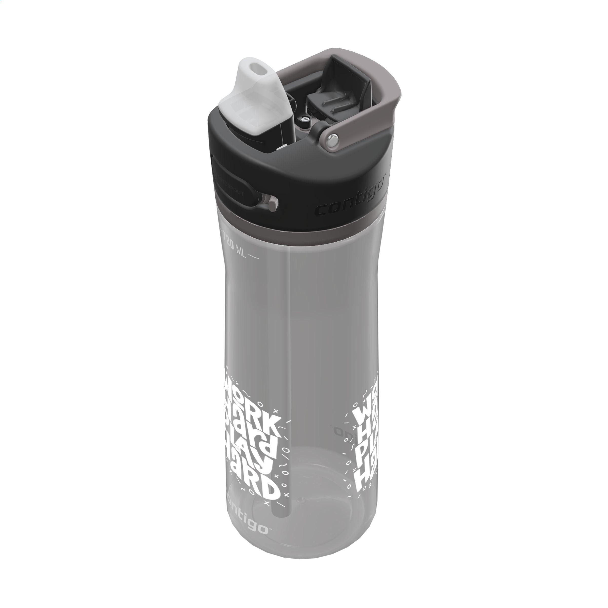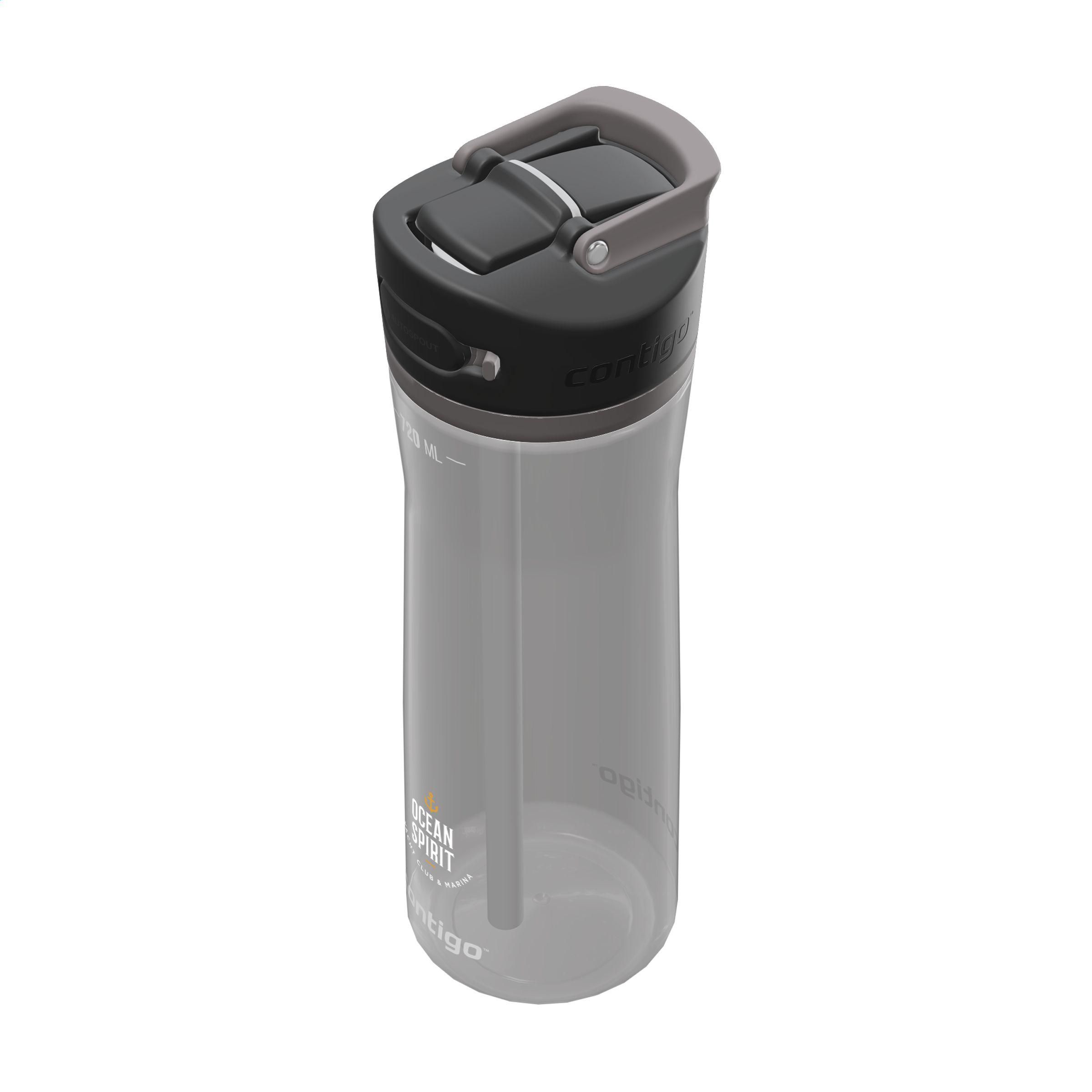 Benutzerfreundliche, trendige Contigo®-Wasserflasche aus Kunststoff. Die Flasche ist mit einem klappbaren Trinkverschluss und einem verschließbaren Strohhalm mit AUTOSPOUT™-Technologie ausgestattet – einem einzigartigen Verschlusssystem, das ein Verschütten verhindert. Im geschlossenen Zustand bleibt der Trinkverschluss gut vor Schmutz und Mikroben geschützt. Dank des schrägen Pop-up-Strohhalms, der fest im Deckel sitzt, kannst du mühelos jeden Tropfen austrinken. Die Flasche lässt sich dank des integrierten Trageringes leicht transportieren und passt in die meisten Standard-Getränkehalter von Autos. Der Deckel und das Gehäuse sind spülmaschinengeeignet (in den oberen Korb stellen). Um den Aufdruck zu erhalten, wird Waschen von Hand empfohlen. Fassungsvermögen 720 ml. LAGERVERFÜGBARKEIT: Bis zu 1000 Stück innerhalb von 10 Werktagen zuzüglich Standardlieferzeit verfügbar. Vorbehaltlich der Verfügbarkeit.Contigo: Das Beste in Qualität, Design und Technologie. Sofort erkennbar durch ihr schlankes und stilvolles Design, robust und solide. Die innovativen Wasserflaschen und Thermobecher sind geruchs- und geschmacksneutral sowie BPA-frei. Die Trinkflaschen sind einhändig bedienbar und garantiert 100% auslaufsicher, sodass sie überall und jederzeit, auch unterwegs, verwendet werden können. Mit 2 Jahren Herstellergarantie.