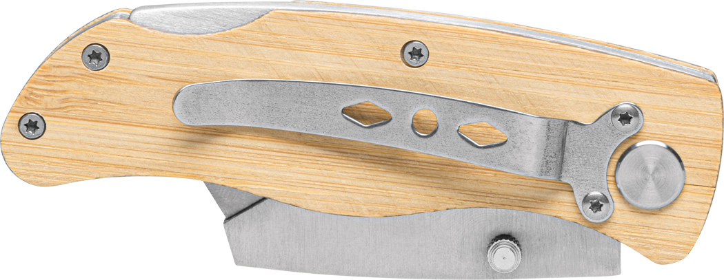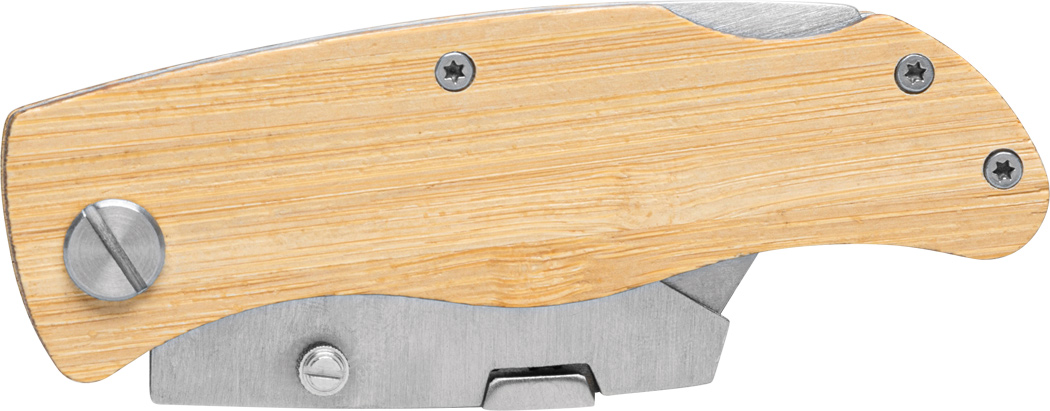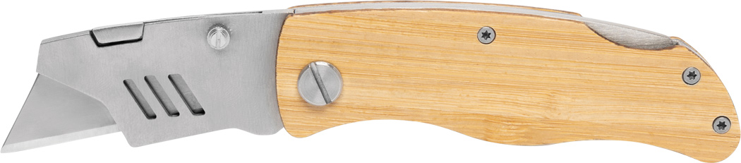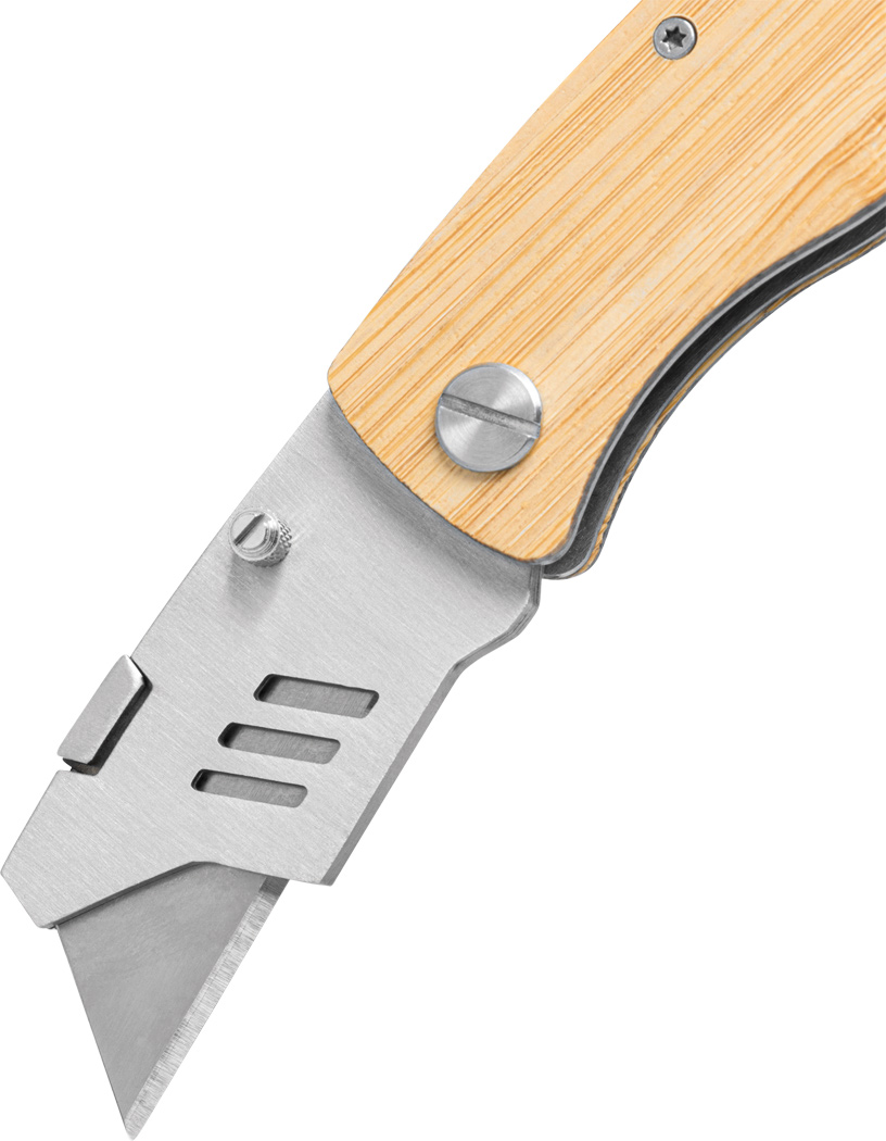 Cuttermesser ECO CUT zum Ausklappen: mit auswechselbarer Klinge, inkl. fünf Ersatzklingen, ergonomische Griffform, Bambus-Griff, Clip zum Befestigen am Gürtel