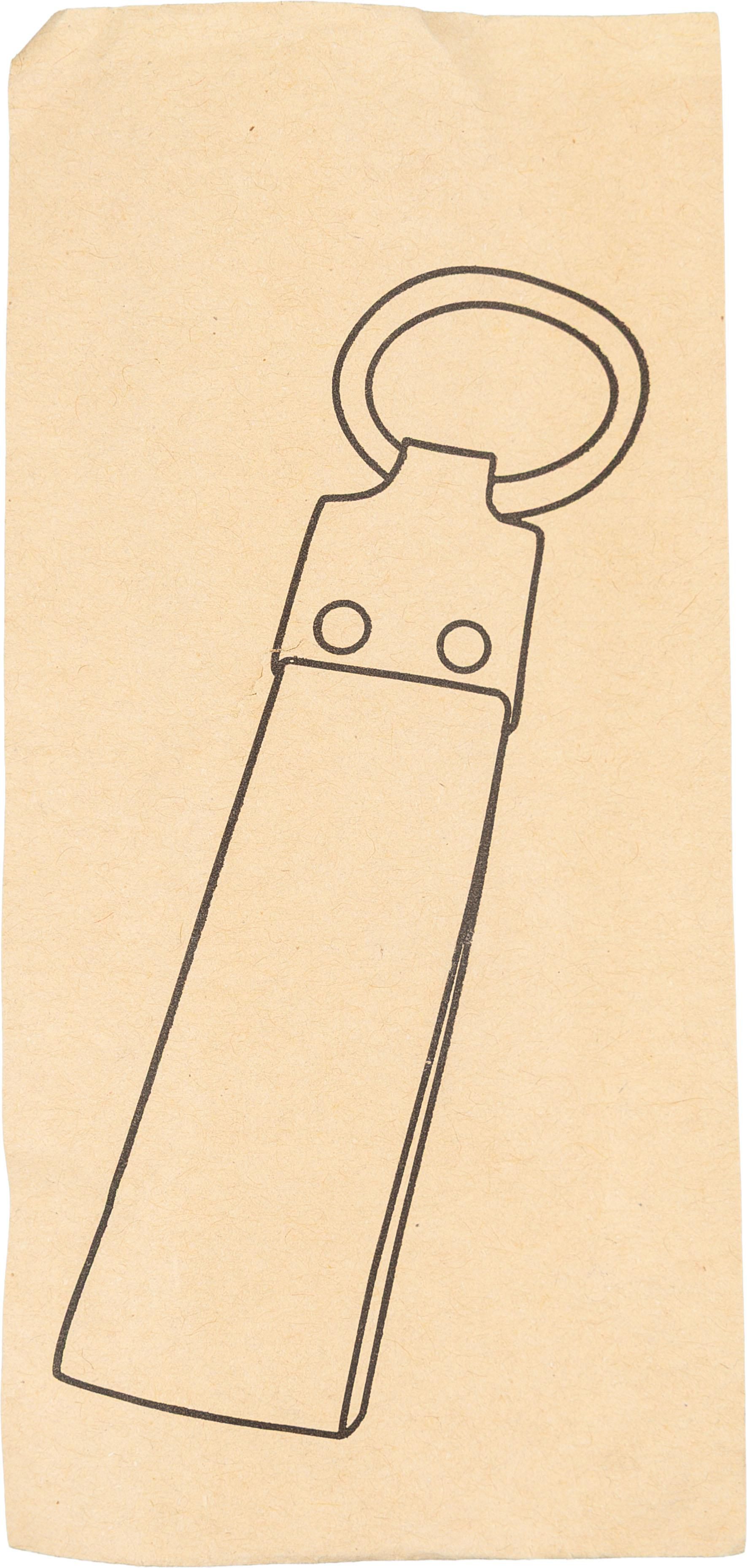 Dieser Schlüsselanhänger besteht aus Denim und einer Zinklegierung und ist mit einem robusten Metallring ausgestattet. Die Kombination haltbarer Materialien macht ihn zu einem stilvollen und funktionellen Accessoire. Er ist einzeln in einer Kraftpapierhülle verpackt.