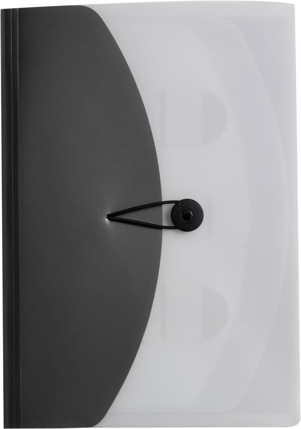Dokumentenmappe aus Kunststoff, transparent gefrostet, ca. DIN A4-Format, mit Schnellverschluss und 4 Ablagefächer.