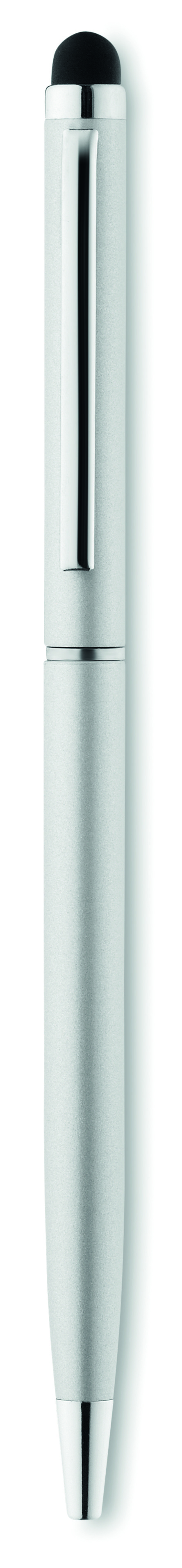 Drehkugelschreiber mit Stylus aus recyceltem Aluminium. Mit verchromtem Clip. Blaue Tinte.