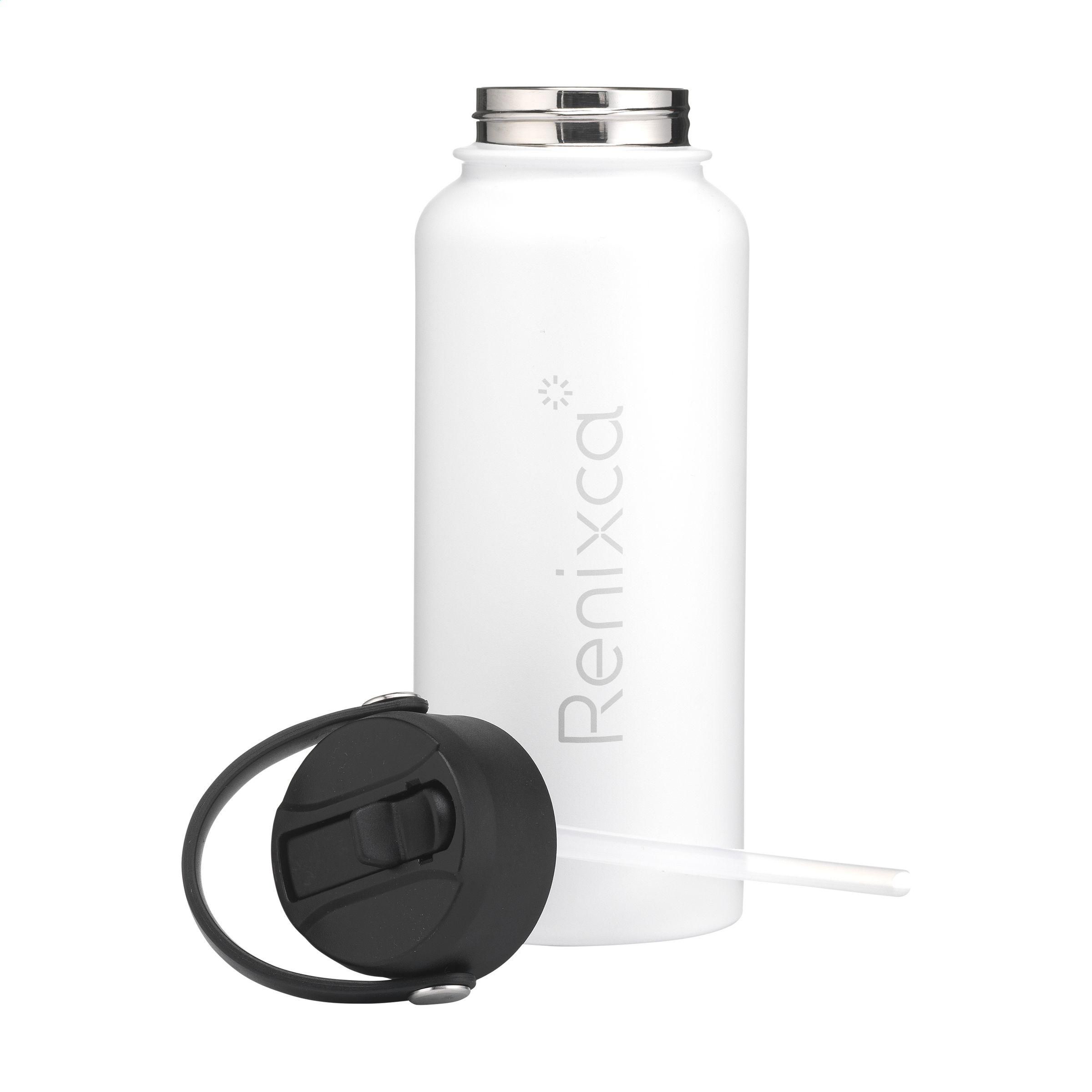 Robuste doppelwandige, auslaufsichere Wasserflasche/Thermosflasche aus recyceltem Edelstahl. Wunderschön mit einer matten Beschichtung versehen. Mit Schraubverschluss in passender Farbe. Die robuste Flasche verfügt über ein ausklappbarem Mundstück und einen verschließbaren Strohhalm für müheloses Trinken. Der praktische Tragering erleichtert das Mitnehmen der Flasche. Geeignet für Kaltgetränke. Dank des großzügigen Fassungsvermögens hast du immer genug dabei, egal ob du unterwegs, beim Sport, bei der Arbeit oder auf Abenteuerreise bist. Nicht spülmaschinengeeignet. RCS-zertifiziert. Gesamtes recyceltes Material: 83%. Fassungsvermögen 900 ml. Edelstahl kann viele Male recycelt werden – die Qualität des Materials bleibt dabei weitgehend erhalten. Durch die Verwendung von recyceltem Edelstahl kommt eine geringere Menge an neuen Rohstoffen zum Einsatz. Das bedeutet weniger Energieverbrauch und weniger Wasserverbrauch.