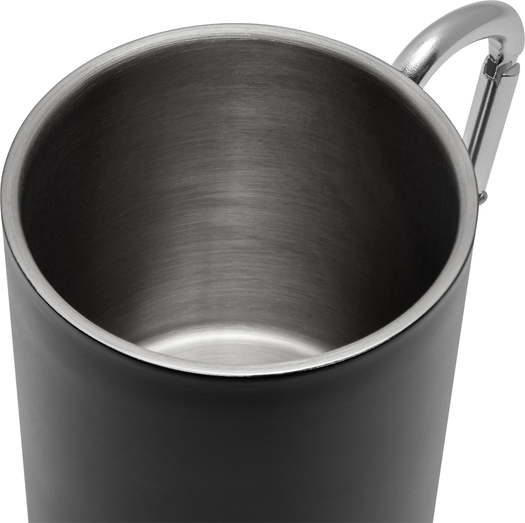 Edelstahl Becher DEEP VALLEY: doppelwandig, außen farbig, mit silbernem Karabinerhaken (der Karabiner ist NICHT als Sicherung geeignet), Füllmenge ca. 300 ml