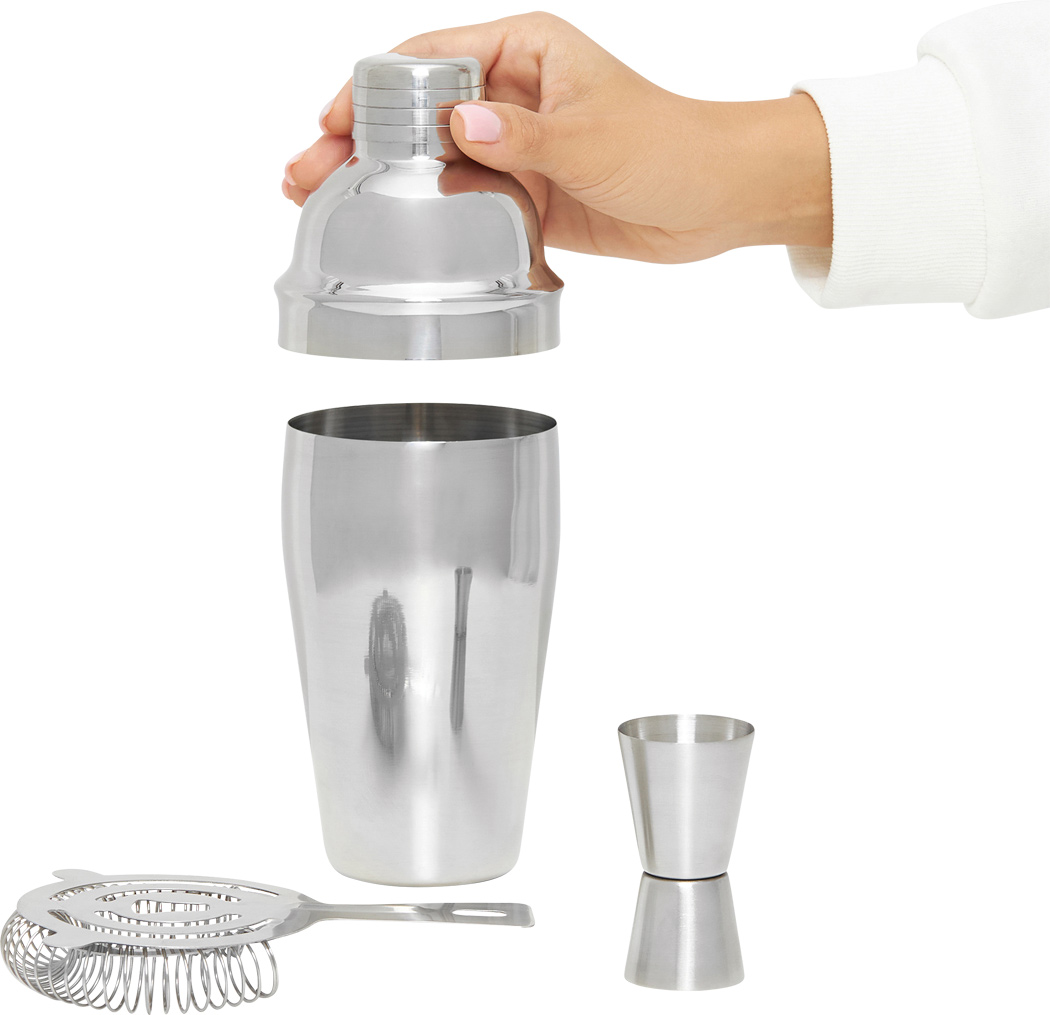 Edelstahl-Cocktailshaker-Set BARKEEPER: bestehend aus Shaker mit Sieb, Deckel, Barsieb und Messbecher, Füllmenge ca. 550 ml, in Box