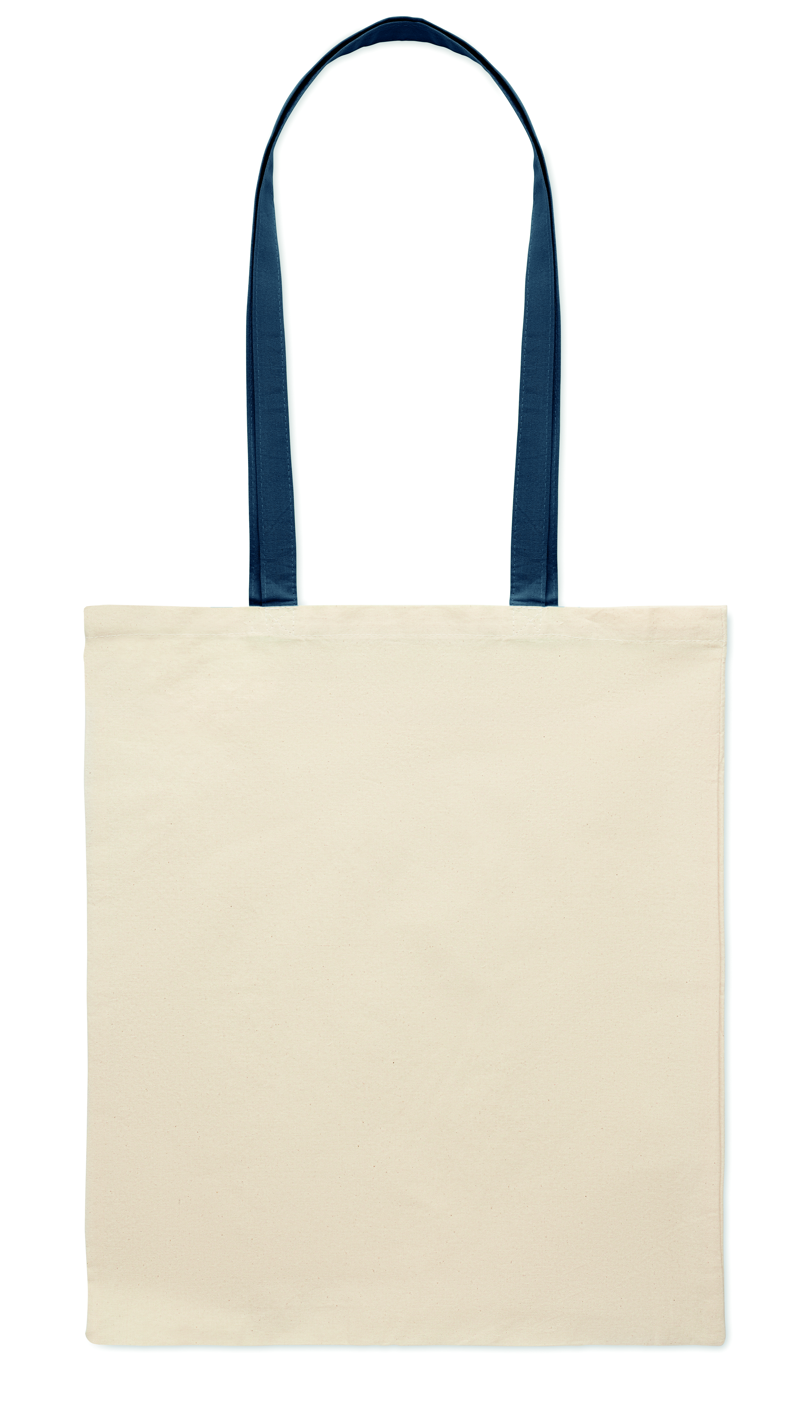Einkaufstasche aus Baumwolle mit langen, farbigen Tragegriffen. 140 g / m². Diese Tasche ist perfekt für den täglichen Einkauf oder andere Aktivitäten. Sie ist mit Tragegriffen in verschiedenen Farben erhältlich. Schultern Sie die Tasche, wenn sie schwer ist und Sie die Hände frei haben möchten. Maximale Traglast 2,5 kg.