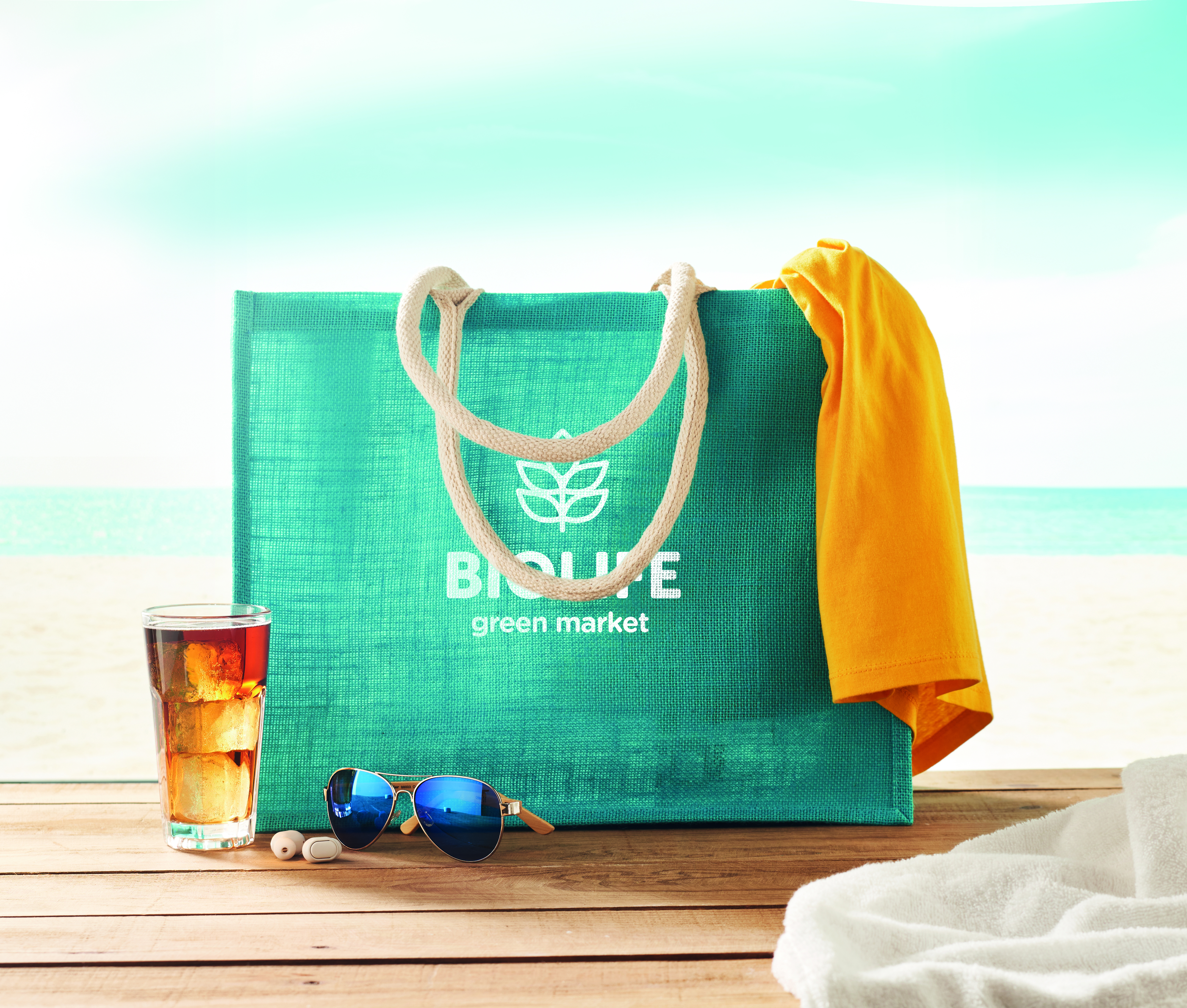 Einkaufstasche Jute AURA mit Logo für Geschäftskunden.
