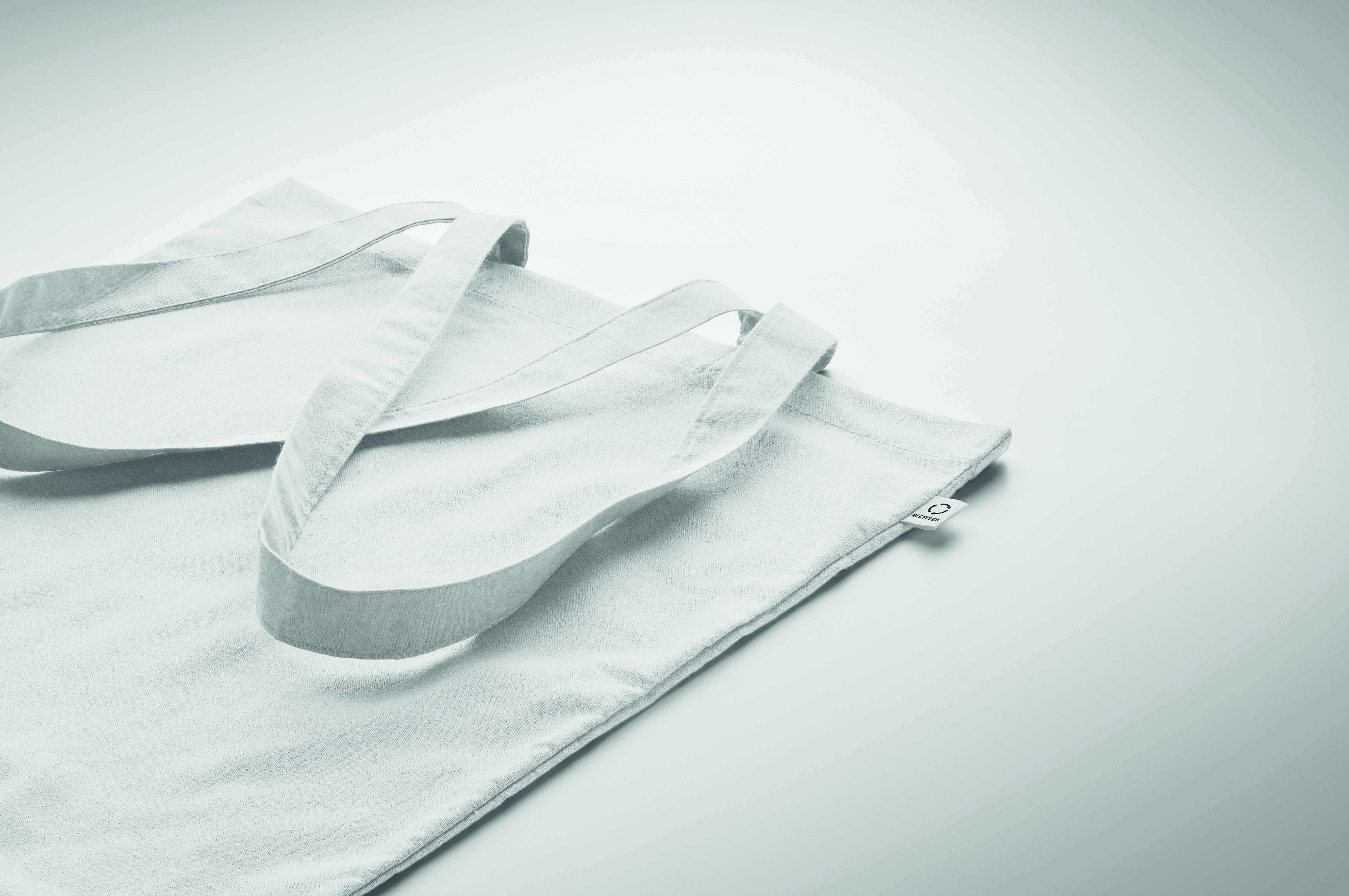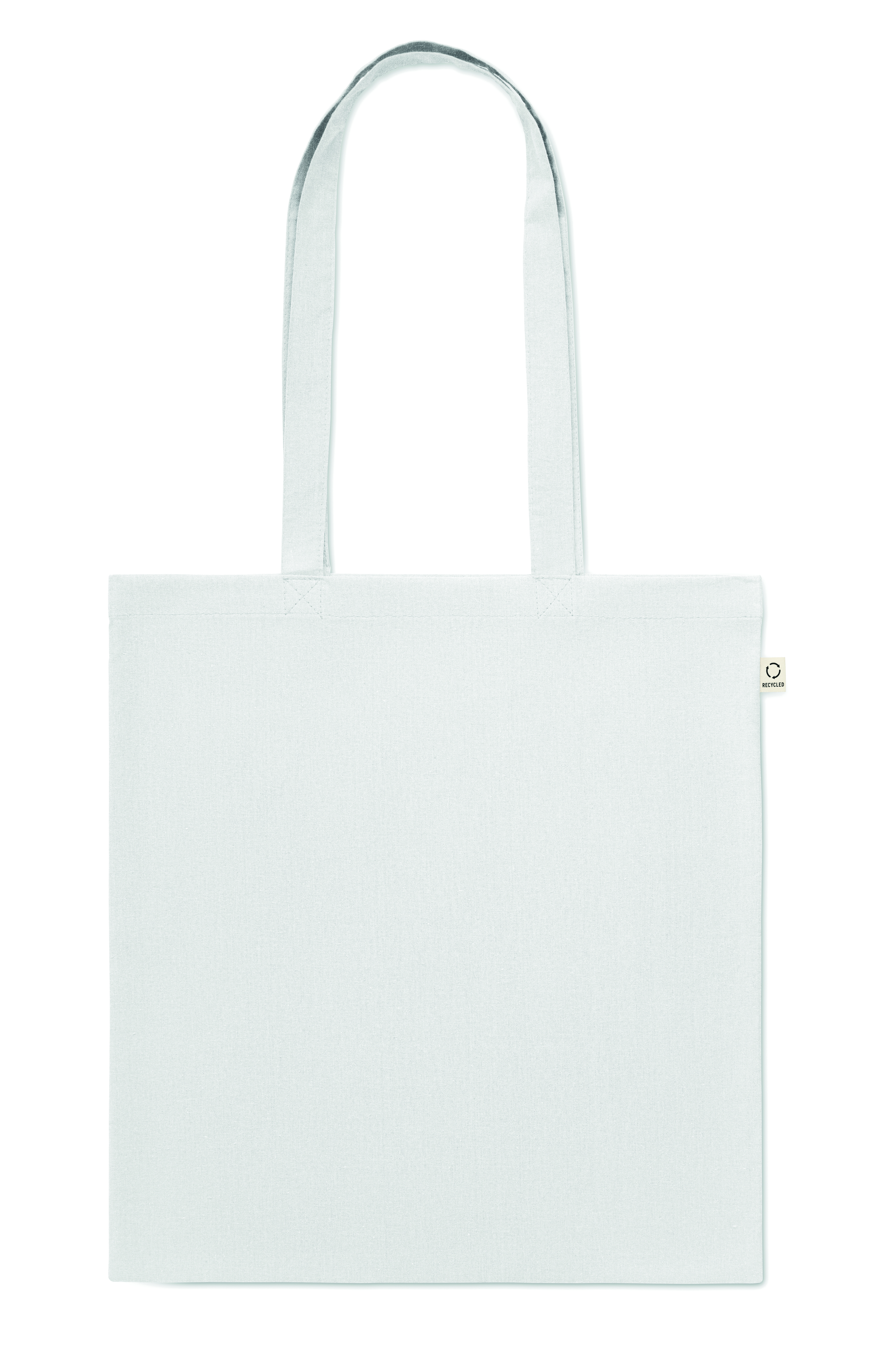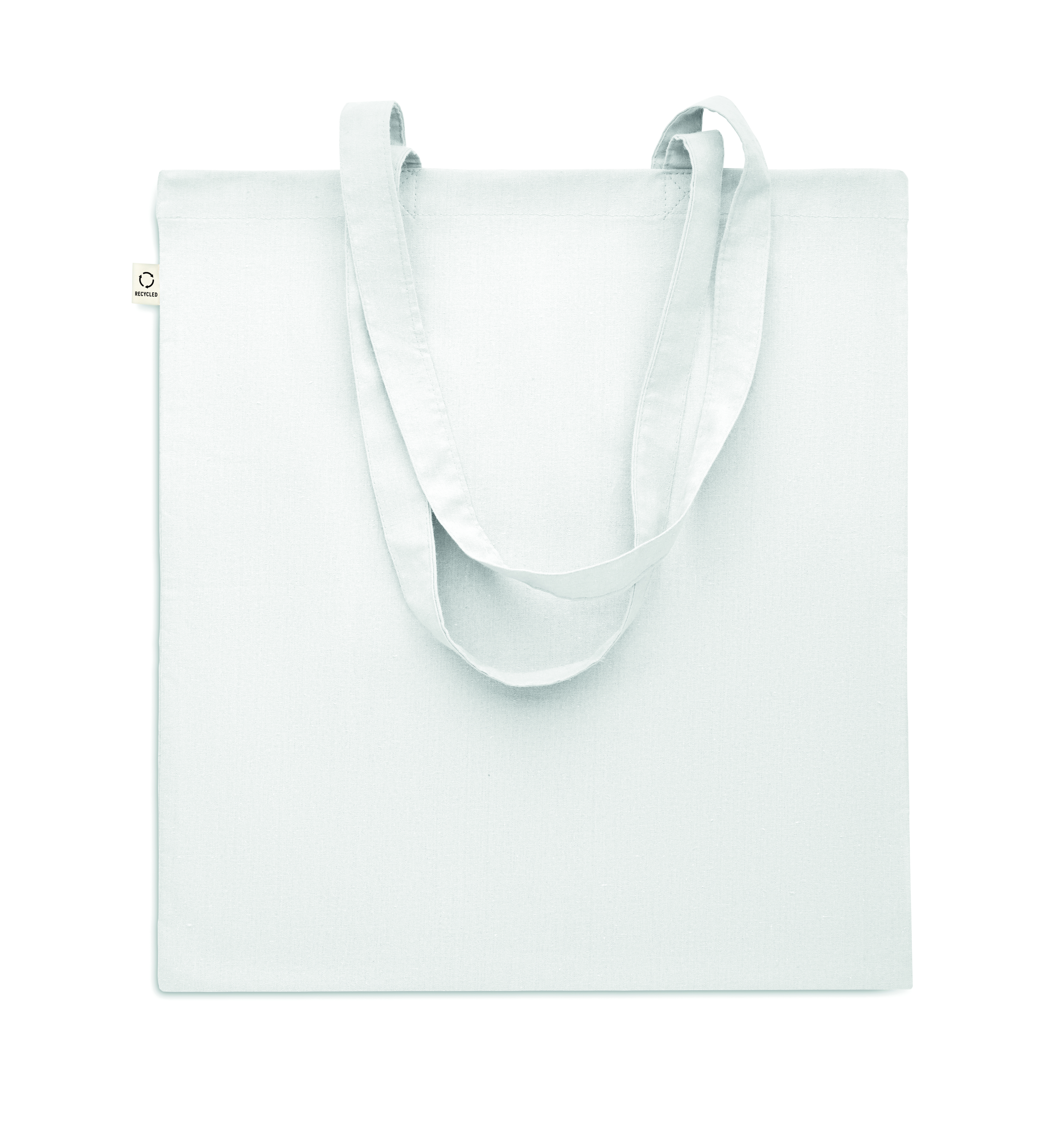 Einkaufstasche aus recycelter Post-Consumer-Baumwolle (70 % recycelte Baumwolle und 30 % RPET) mit langen Tragegriffen. 140 g / m². Artikel kann nach dem Bedrucken schrumpfen.