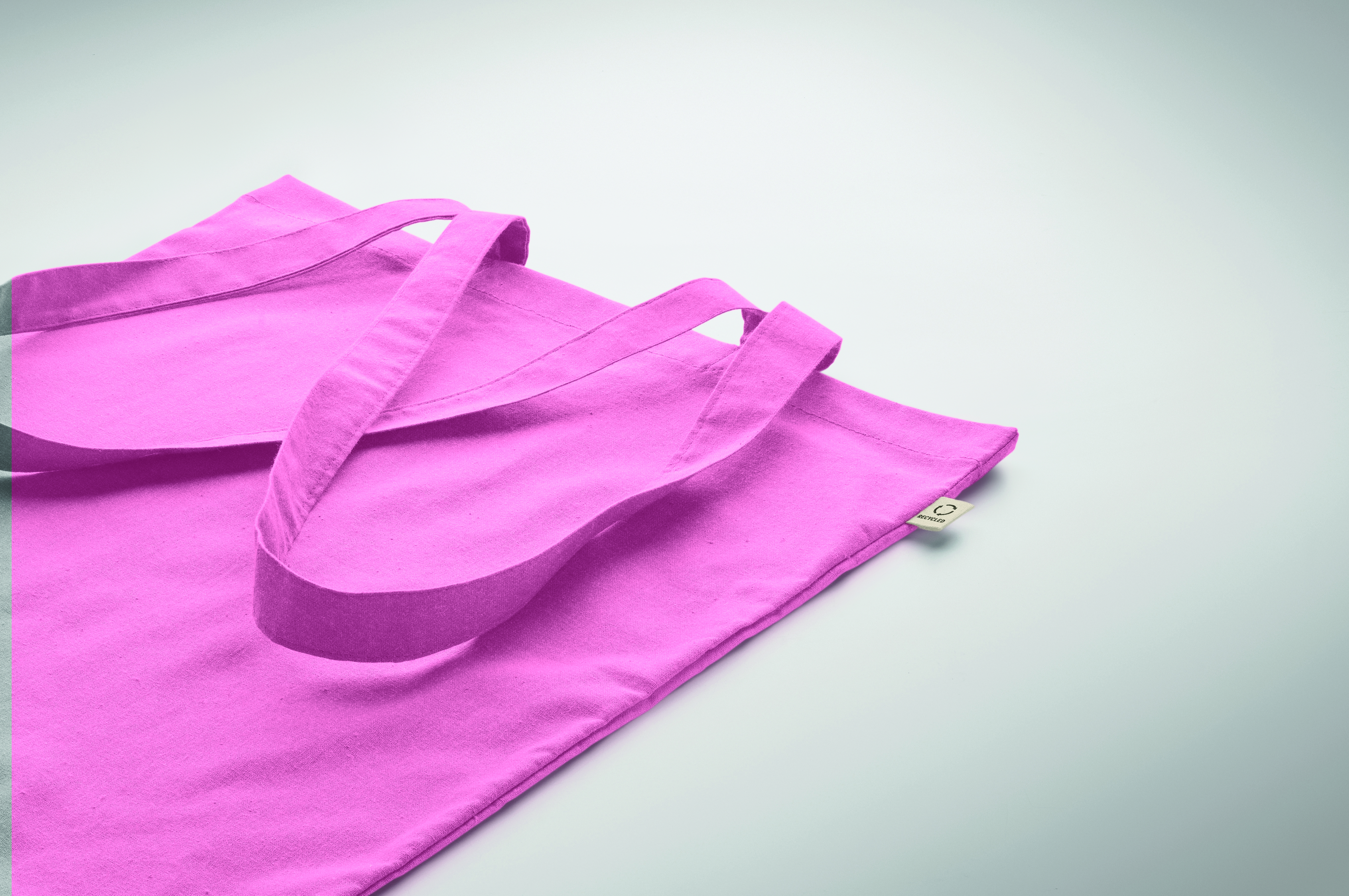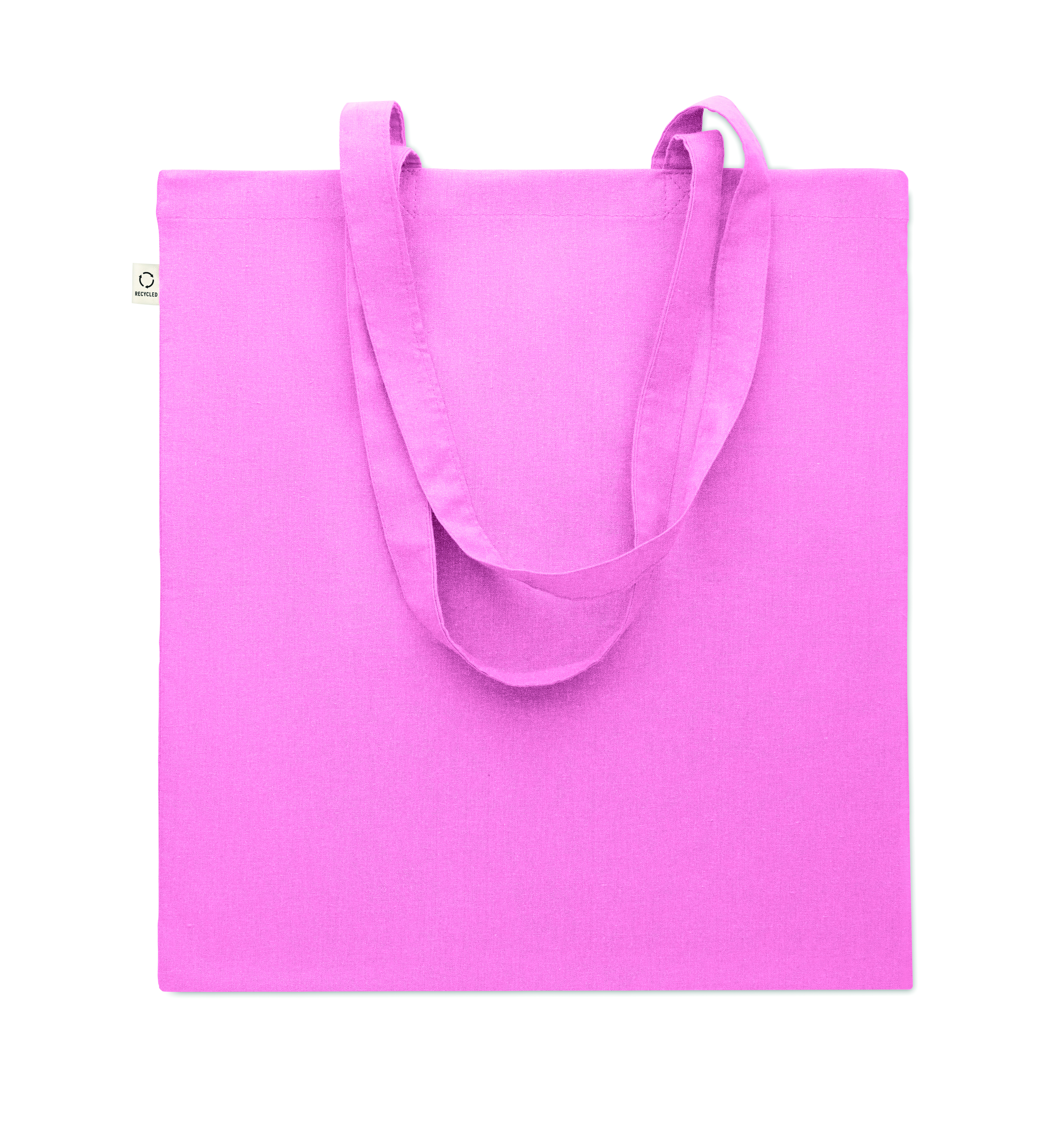Einkaufstasche aus recycelter Post-Consumer-Baumwolle (70 % recycelte Baumwolle und 30 % RPET) mit langen Tragegriffen. 140 g / m². Artikel kann nach dem Bedrucken schrumpfen.