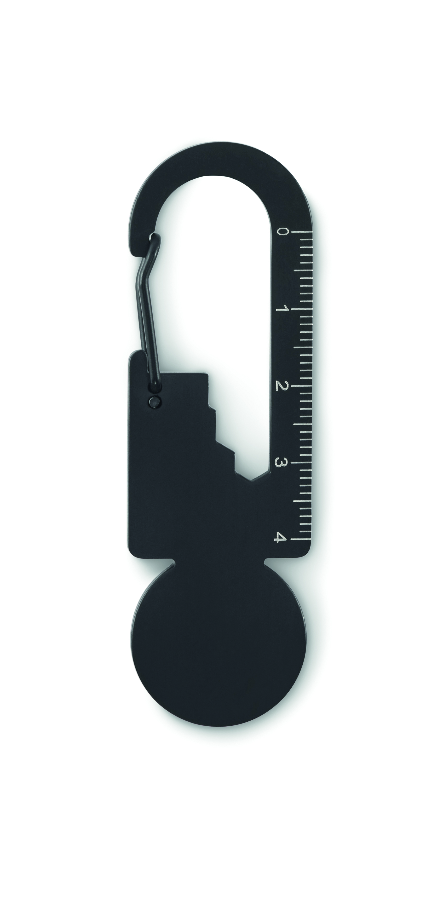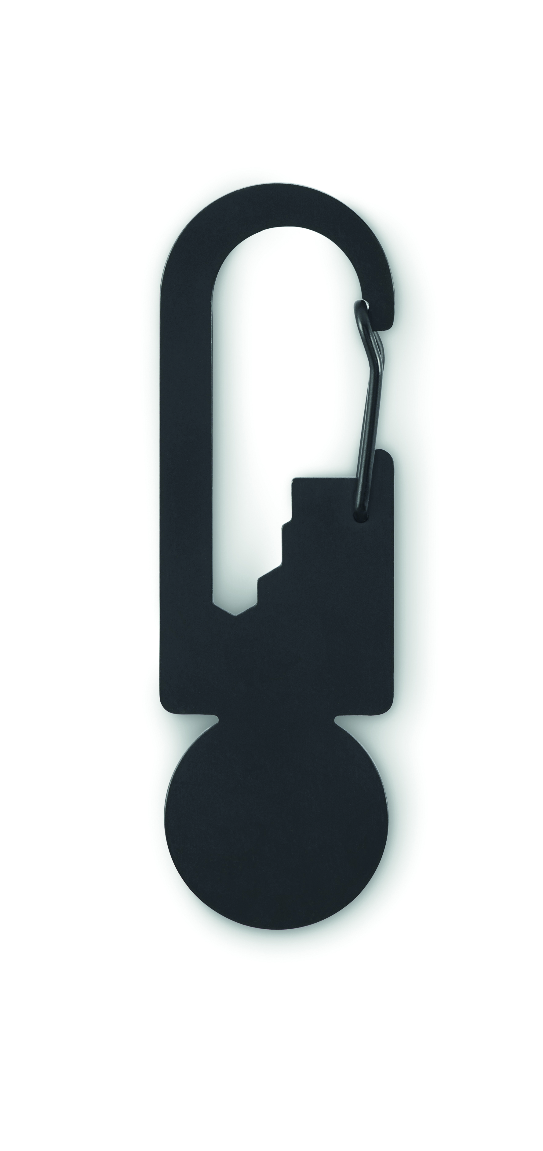 Multifunktionaler Einkaufswagenchip aus recyceltem Edelstahl ( 90% recycelter Edelstahl und 10% Edelstahl). Inkl. Kapselheber, Lineal und Sechskantschlüssel 5 ,5mm, 7mm und 8mm.