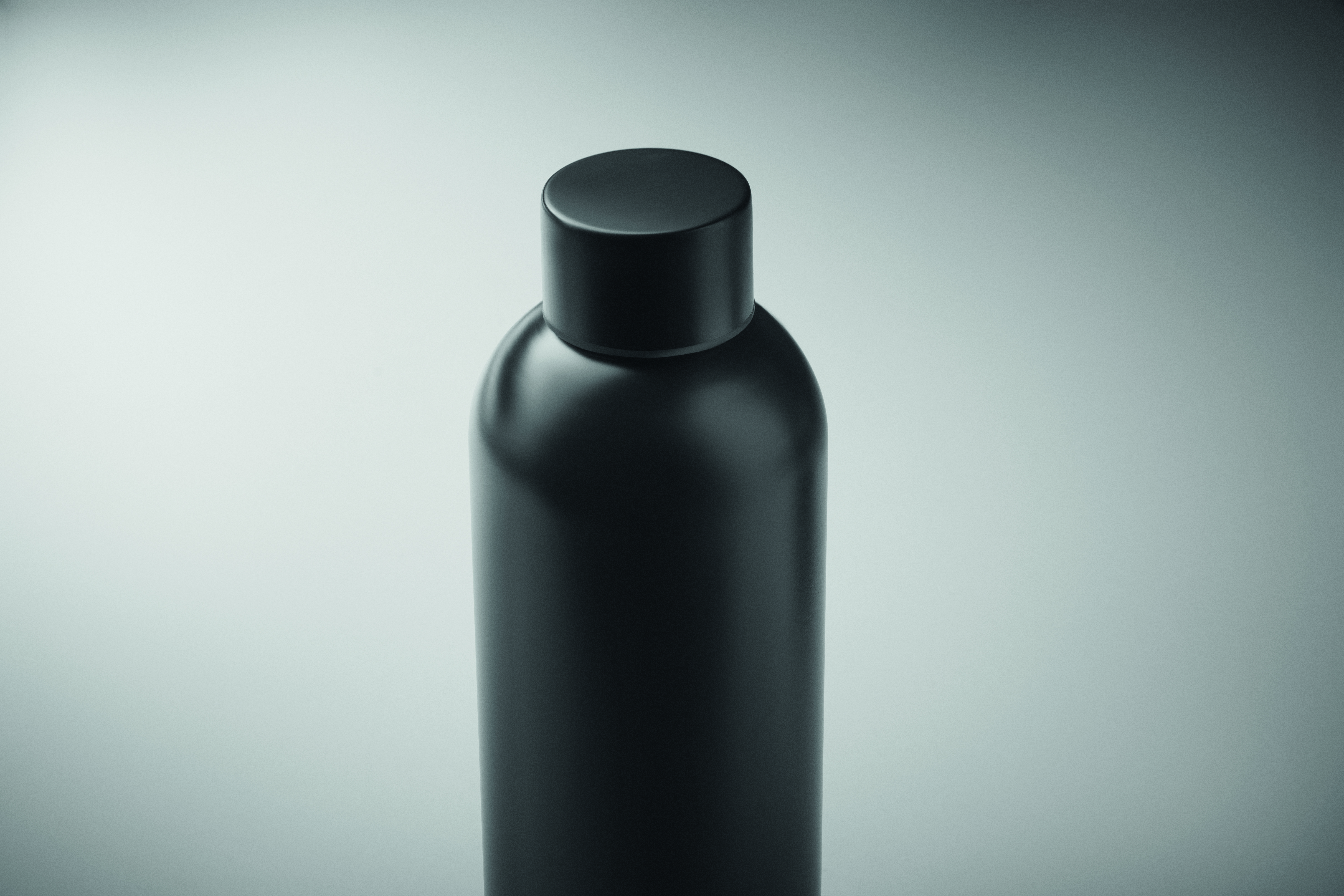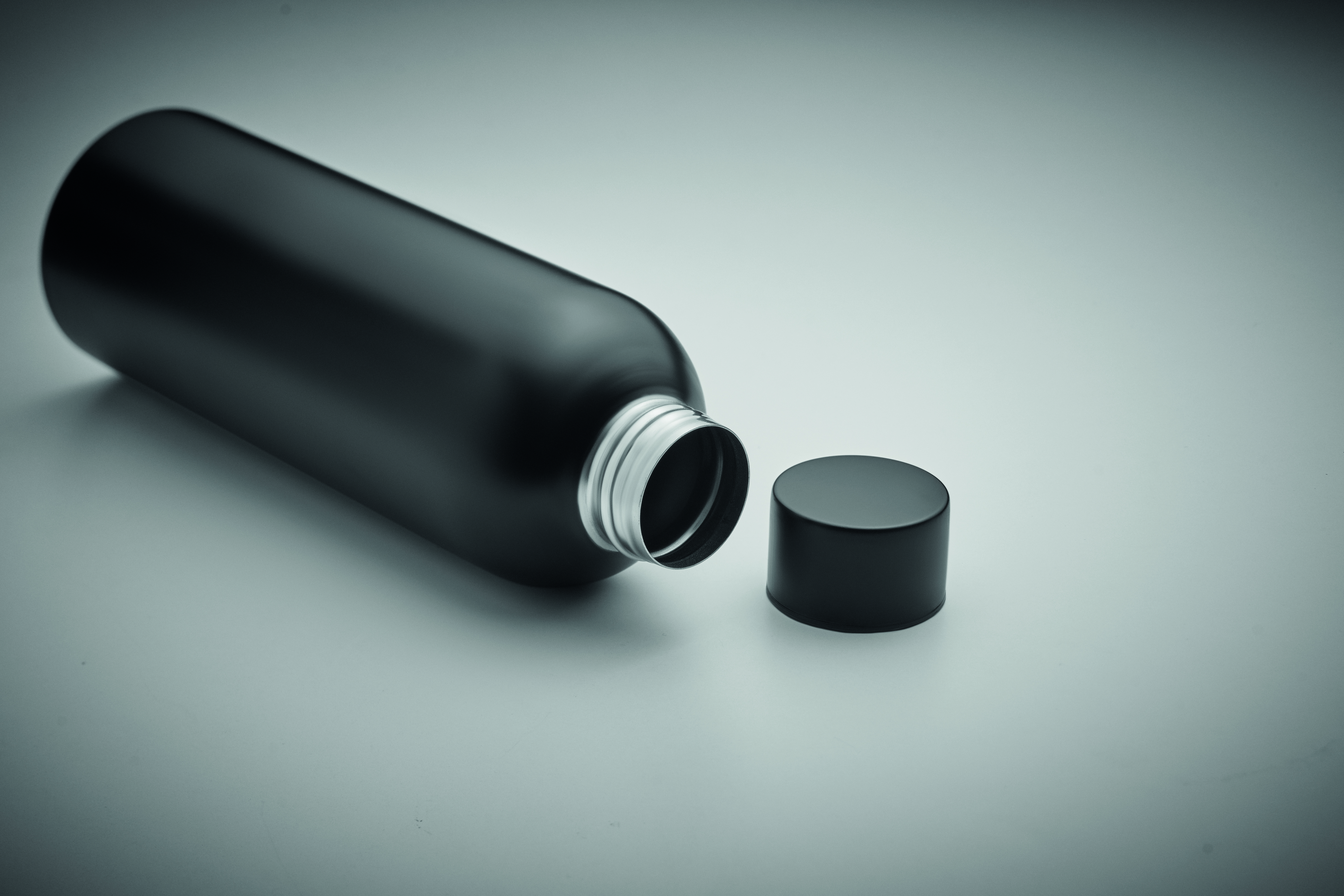 Einwandige Flasche aus recyceltem Edelstahl (90 % recycelter Edelstahl und 10 % Edelstahl). Auslaufsicher. Füllmenge 750 ml. Da der einwandige Flasche die Hitze nach Außen leiten kann, kann der Artikel heiß werden.