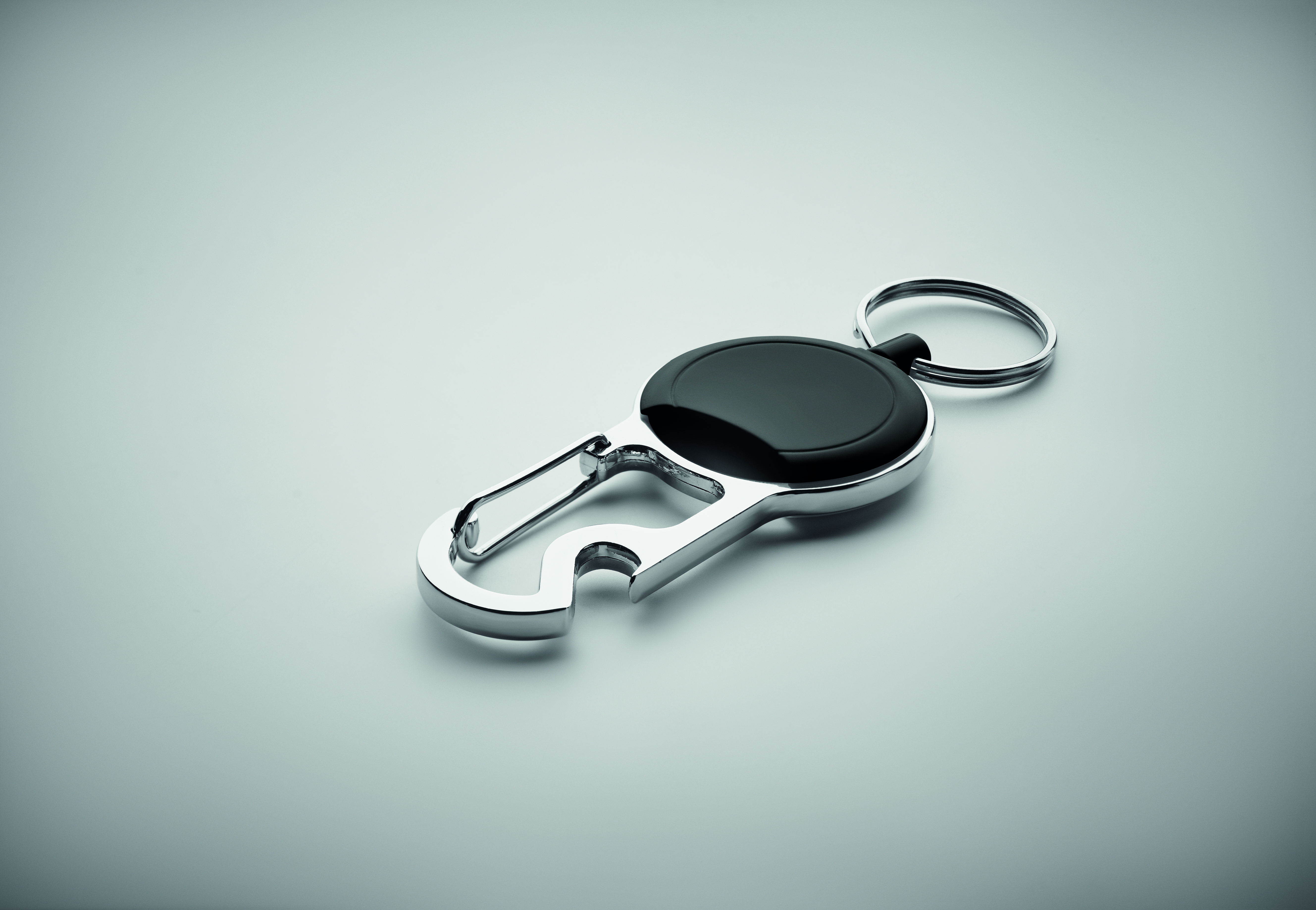 Einziehbarer Kartenhalter aus ABS mit Clip, Schlüsselring und Kapselheber.